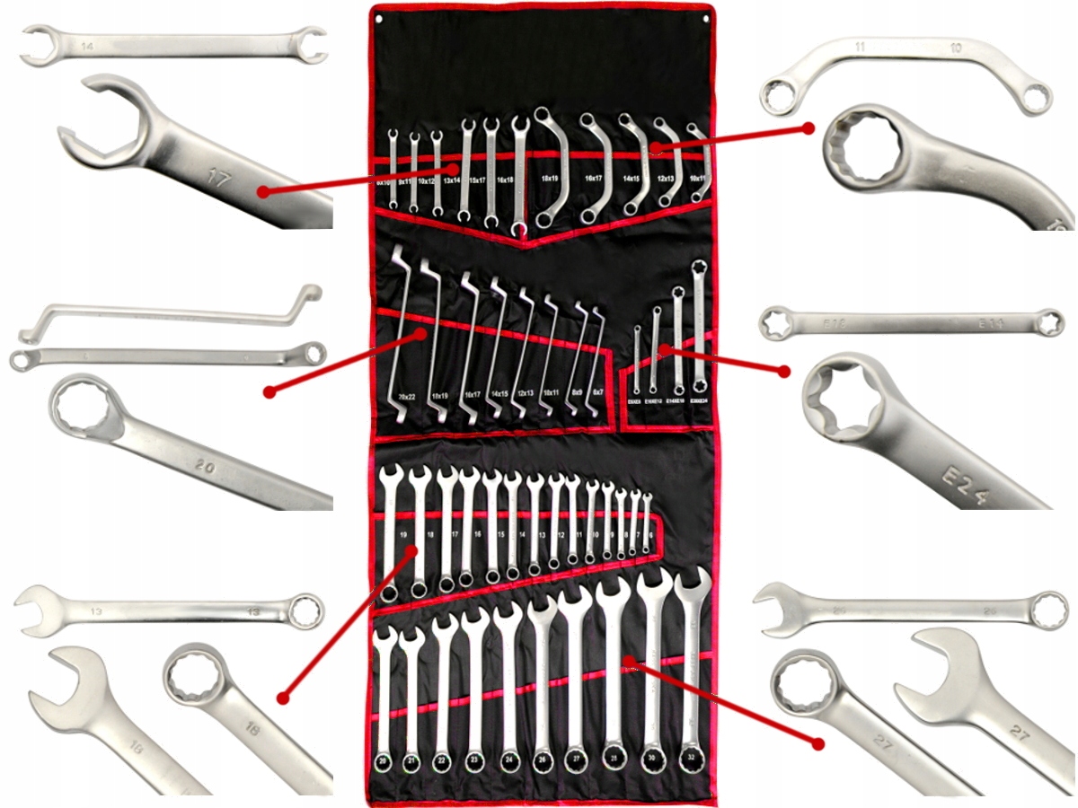 Bogaty zestaw kluczy 47szt. Klucze bardzo solidne i dokładnie wykonane z wysokogatunkowej stali odpornej na korozję - CrV. Idealne do użytkowania w miejscach trudno dostępnych. Łatwe i szybkie dokręcanie i odkręcanie w najtrudniejszych warunkach. Zastosowanie do prac instalacyjnych, warsztatów samochodowych, zakładów mechanicznych i ślusarskich, majsterkowiczów. W zestawie klucze płasko-oczkowe, torx, klucze typu C, klucze do śrub miękkich, klucze oczkowe-odgięte. Zestaw zapakowany w poręczny futerał, który umożliwia łatwy transport i utrzymanie kultury pracy w warsztacie. W ZESTAWIE: ✔️ klucze półotwarte do przewodów: ✔️ klucze oczkowe typu C do pomp, alternatorów: ✔️ klucze oczkowe torx: ✔️ klucze oczkowe - odgięte: ✔️ klucze płasko-oczkowe: