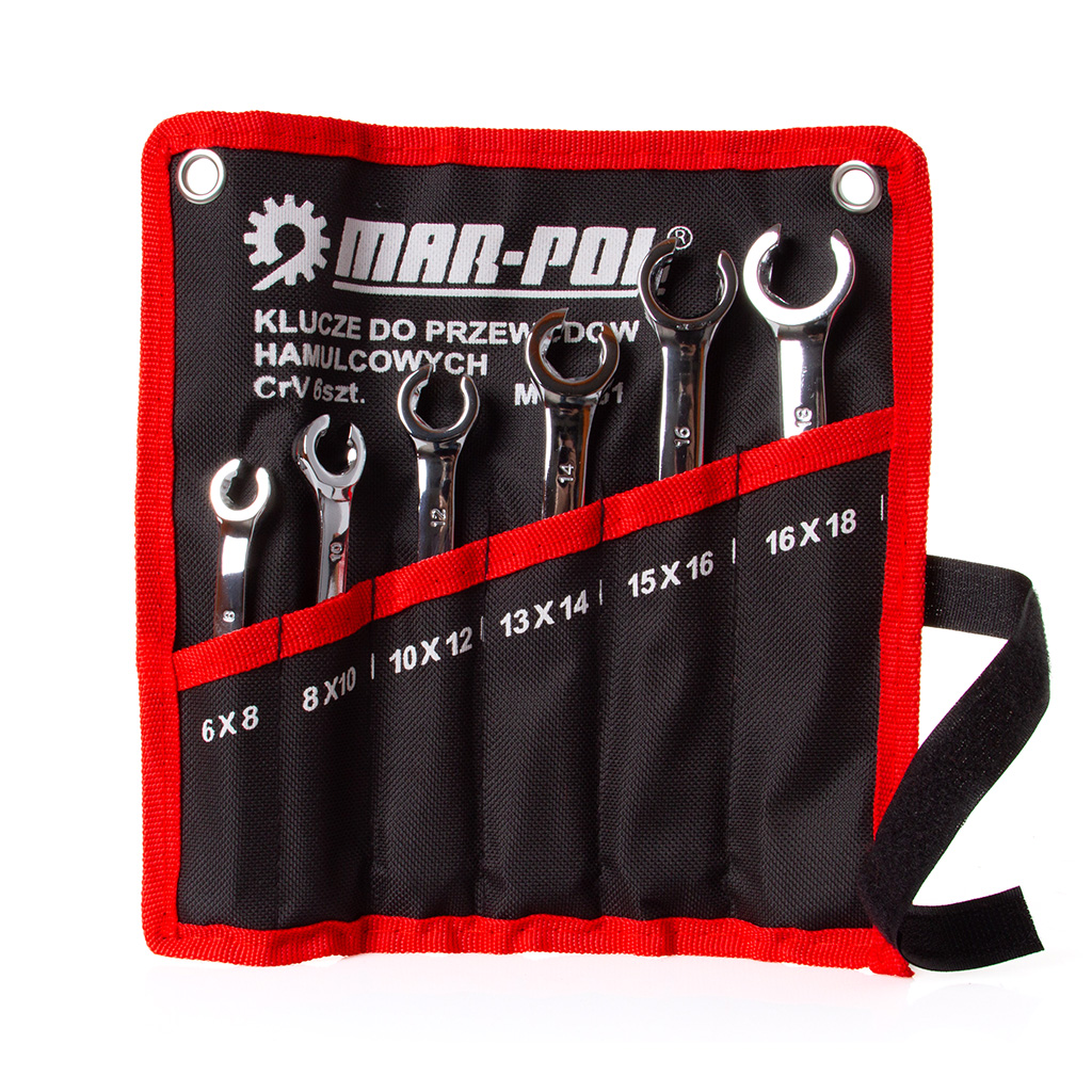 Wysokiej jakości zestaw kluczy do przewodów hamulcowych wykonane ze stali chromo-vanadiu. Łatwe i szybkie dokręcanie i odkręcanie w najtrudniejszych warunkach. Zastosowanie do prac instalacyjnych, warsztatów samochodowych, zakładów mechanicznych i ślusarskich, majsterkowiczów. Zestaw zapakowany w poręcznym pokrowcu. Wykończenie powierzchni: chromowana, satynowa. Specjalny profil zębów podnoszący max moment dokręcania o 15% (bez uszkodzenia nakrętki). Satynowe wykończenie, minimalizujące poślizg klucza zanieczyszczonego olejem. Zaokrąglone kształty przejścia między główką klucza i rękojeścią. Polerowana główka klucza. Klucz kuty matrycowo. Doskonale wykalibrowany. Do przewodów hydraulicznych. Do przewodów paliwowych. Do przewodów hamulcowych. Ergonomiczna rączka. Kluczą są bardzo solidnie i dokładnie wykonane z wysokogatunkowej stali odpornej na korozję. Idealne do użytkowania w miejscach trudno dostępnych.》》》 KLUCZE ZESTAW KLUCZY DO PRZEWODÓW HAMULCOWYCH 6szt M58161 《《《