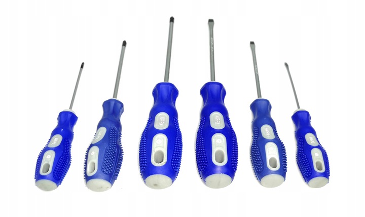 Trzon przechodzący przez rękojeść, zakończony zabierakiem sześciokątnym do wspomagania kluczem. Przekrój rękojeści i trzonu sześciokątny. Końce magnetyczne. Materiał: CrV, końcówki dodatkowo utwardzane.》》》 ŚRUBOKRĘTY WKRĘTAKI ZESTAW ŚRUBOKRĘTÓW WKRĘTAKÓW PŁASKIE KRZYŻAK 6el CRV M61005 《《《