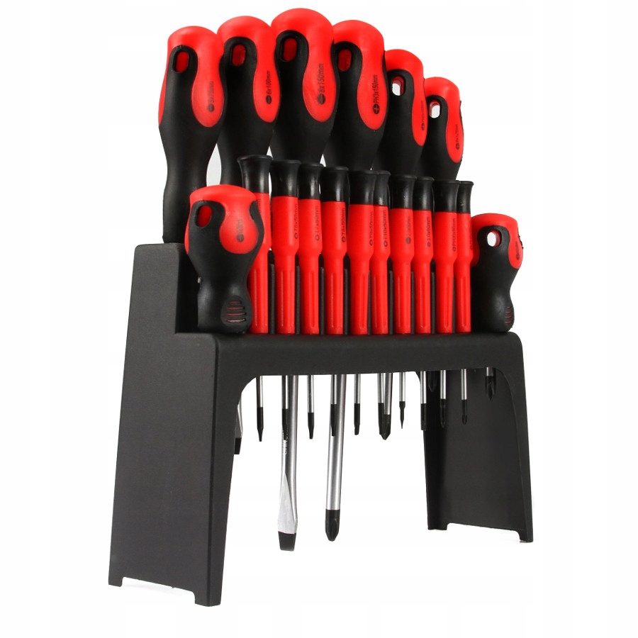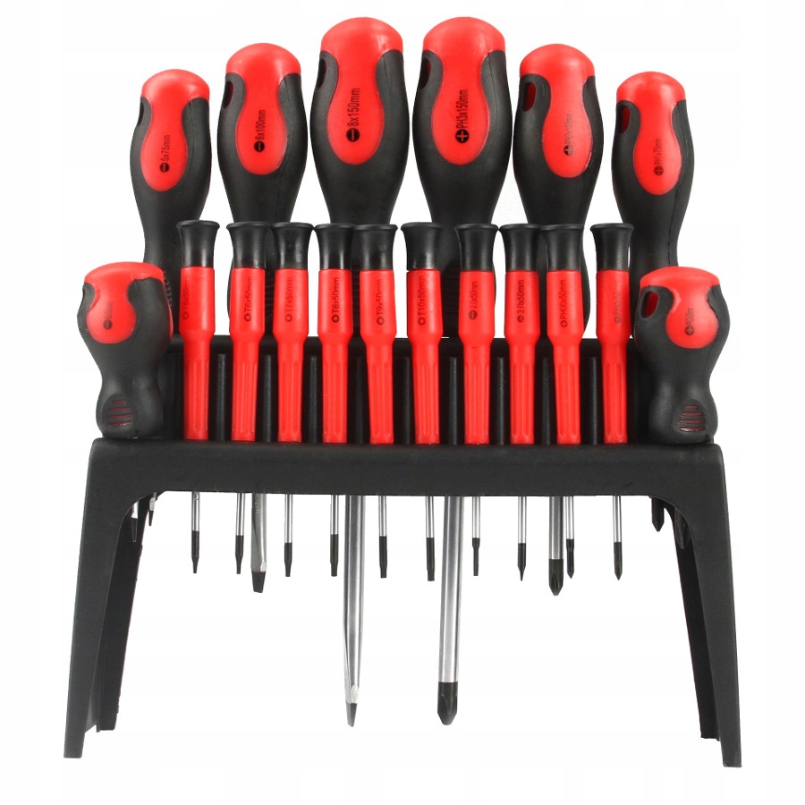 Zestaw 18 wkrętaków renomowanej marki MAR-POL wykonanych ze stali chromowo-wanadowej (CrV) śrubokręty płaskie + śrubokręty krzyżakowe, w różnych rozmiarach. Dziurka w główce umożliwia wspomaganie się kluczem przy dokręcaniu/odkręcaniu. Końcówki wkrętaków są namagnesowane co znacznie ułatwia pracę. Zestaw zawiera najczęściej używane rozmiary od bardzo małych do dużych. ZESTAW ZAWIERA: płaskie: 2x50mm, 3x50mm; krzyżakowe philips: 00x50mm, 0x50mm; torx: T5x50mm, T6x50mm, T7x50mm, T8x50mm, T9x50mm, T10x50mm》》》 ZESTAW ŚRUBOKRĘTÓW WKRĘTAKÓW Z MAGNESEM 18 sztuk M61008 《《《
