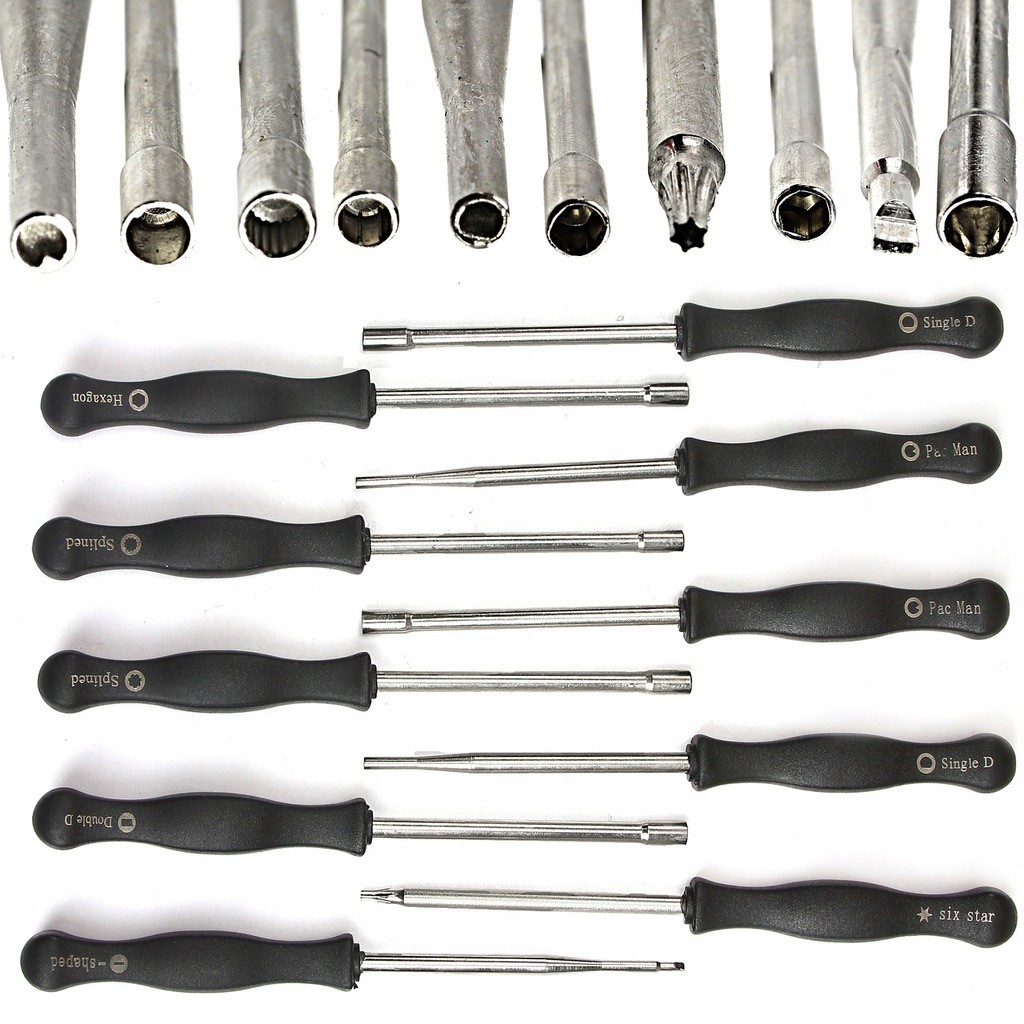 Wyjątkowy zestaw 10 kluczy do regulacji gaźników . Dzięki naszemu zestawowi bez trudu poradzisz sobie z regulacją gaźników w ogrodowych narzędziach spalinowych. Służą miedzy innymi w takich urządzeniach jak: A wszystko to w jednym poręcznym komplecie, wykonanym z wysokiej jakości stali narzędziowej. ✅ Zestaw posiada takie końcówki jak; Wszystko to zamknięte zostało w poręcznym pokrowcu zamykanym na suwak. Dzięki temu wszystkie kluczę będziesz miał w jednym miejscu od razu gotowe do użycia.