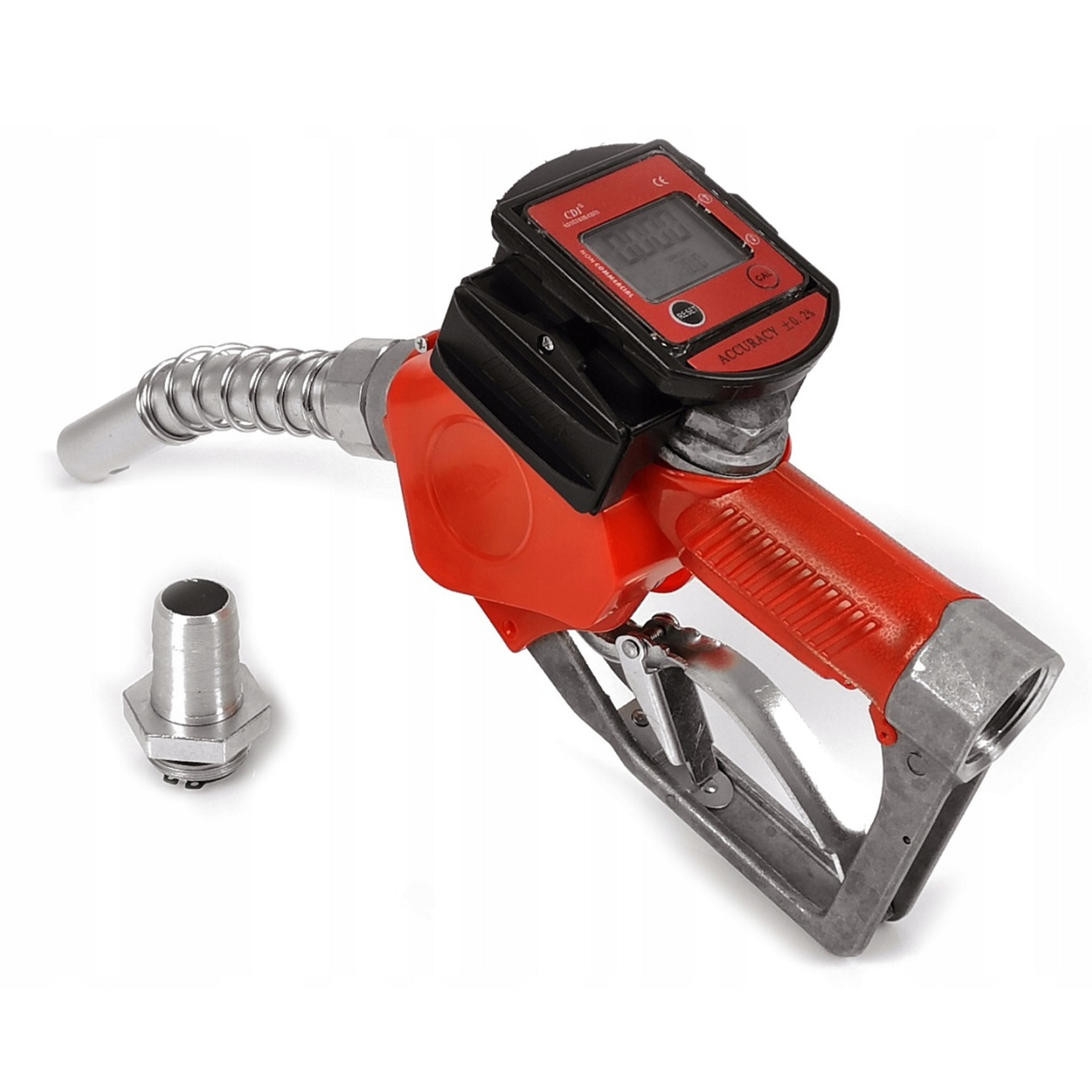 Nowoczesny pistolet do paliwa wyposażony w elektroniczny miernik przepływu jak i nowoczesny system auto-stop pistolet sam odbijja (z dokładnością +/- 0.2%) przeznaczony do użytku w: Turbina posiada czujniki magnetyczne osadzone no łopatkach turbiny przez co zliczanie obrotów odbywa się bezdotykowo nie powodując tarcia co przekłada się na bardzo dużą dokładność licznika 0,2% oraz jego dużą żywotność. Licznik posiada możliwość kalibracji, fabrycznie skalibrowane są na 0, warto jednak sprawdzić ustawienia w swoim środowisku pracy. Użytkowanie pistoletu jest możliwe w różnych jednostkach pomiaru: ✅ Dane Techniczne: