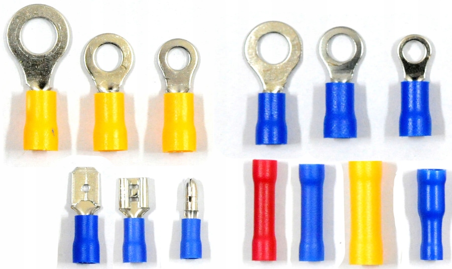 Uniwersalny zestaw końcówek i złączy elektrycznych w trzydziestu popularnych rozmiarach W skład zestawu wchodzi 480 sztuk przyłączy i końcówek. Zastosowanie m.in. w: Materiał: miedź + PVC + Stal