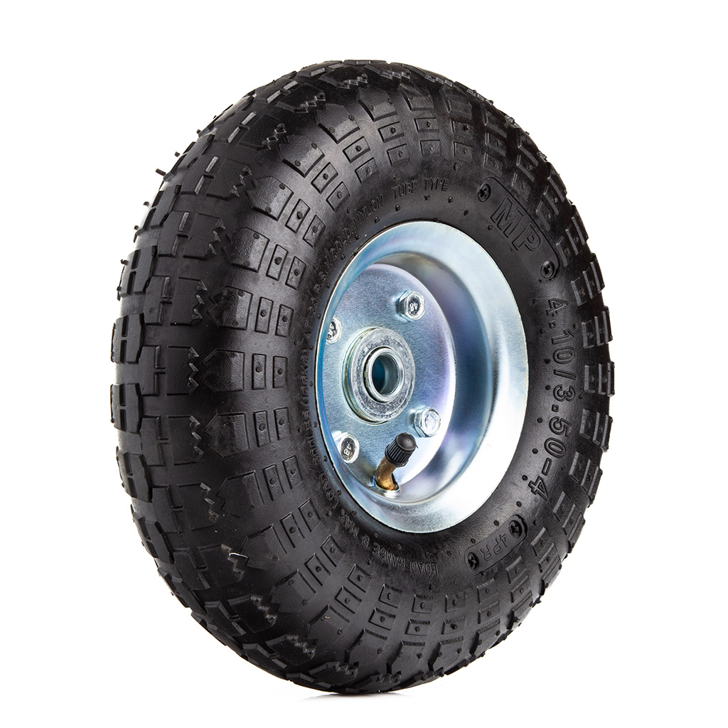 Koło do taczki o maksymalnym obciążeniu 136 Kg. Wytrzymała metalowa felga malowana proszkowo zapewnia podwyższoną stabilność. Kółko nadaje się do różnego rodzaju wózków, taczek. 》》》 MOCNE KOŁO KÓŁKO DO TACZKI WÓZKA Z DĘTKĄ POMPOWANE 3,5-4 OŚKA 16mm M85222/16 《《《