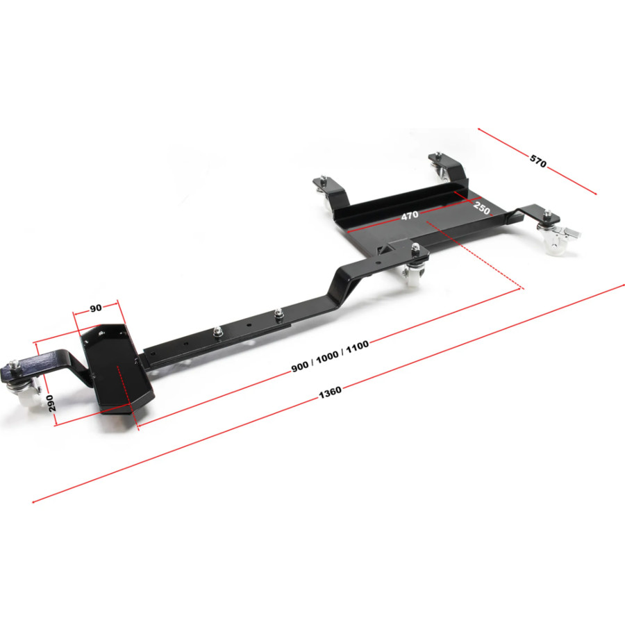 Mobilna platforma jest idealną pomocą do szybkiego, bezpiecznego i łatwego parkowania lub przenoszenia motocykla, nawet gdy przestrzeń jest ograniczona. Wykonana z wytrzymałej stali, ta szyna manewrowa jest wyposażona w 5 kółek, które można obracać o 360° z doskonałymi właściwościami jezdnymi, jest wytrzymała, elastyczna, a także imponuje łatwością obsługi. Funkcja blokady tylnych kółek nie tylko ułatwia manewrowanie, ale także zapewnia motocyklowi bezpieczne oparcie po pomyślnym zaparkowaniu i zapobiega przypadkowemu stoczeniu się. Pasuje do praktycznie wszystkich motocykli i skuterów z boczną podstawką. Regulowana długość.