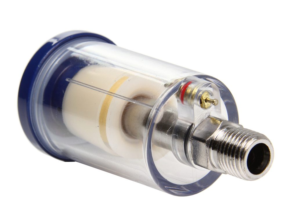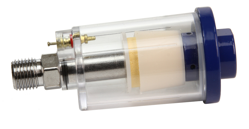 Zespół filtrująco-odwadniający zapewnia pełną kontrolę nad jakością powietrza. Odwadniacz zawierający separator wody oczyszcza sprężone powietrze z wilgoci, oleju, kondensatu i cząstek stałych. Filtruje sprężone powietrze z kropel wody, które powodują zacieki podczas malowania czy też korozję innych narzędzi. Separator można zamontować przed szybko-złączką przy kompresorze lub bezpośrednio przed urządzeniem pneumatycznym lub pistoletem lakierniczym.