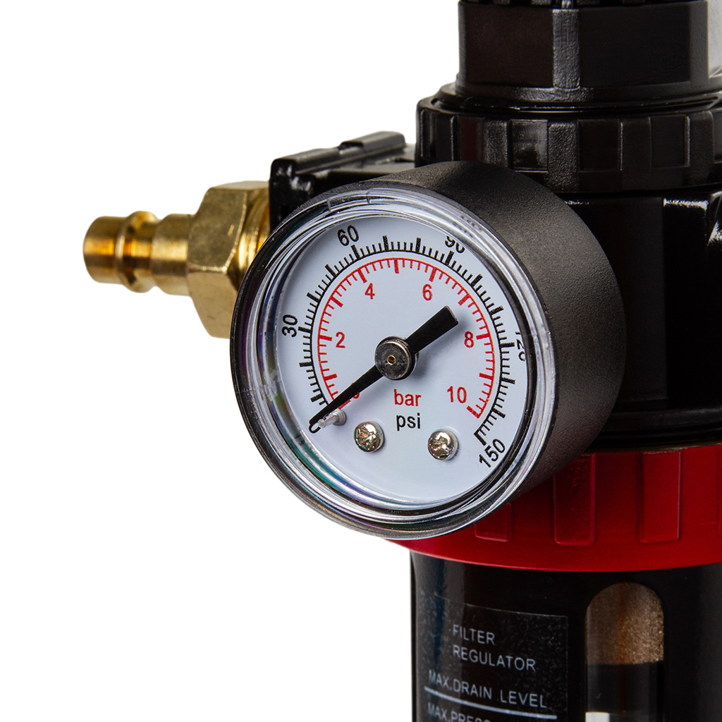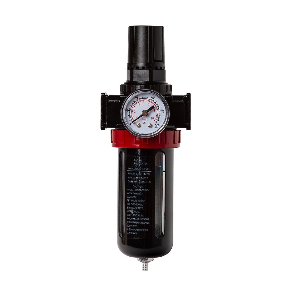 Wysokiej jakości reduktor ciśnienia z filtrem powietrza odwadniacz 1/2 Nastawiany ręcznie, utrzymujący stałą wartość ciśnienia na wyjściu, niezależnie od zmian, wyższego ciśnienia wejściowego. - Gniazdo: 1/2"- Przepływ powietrza: 1750L/min- Zakres ciśnienia roboczego: 0-150psi