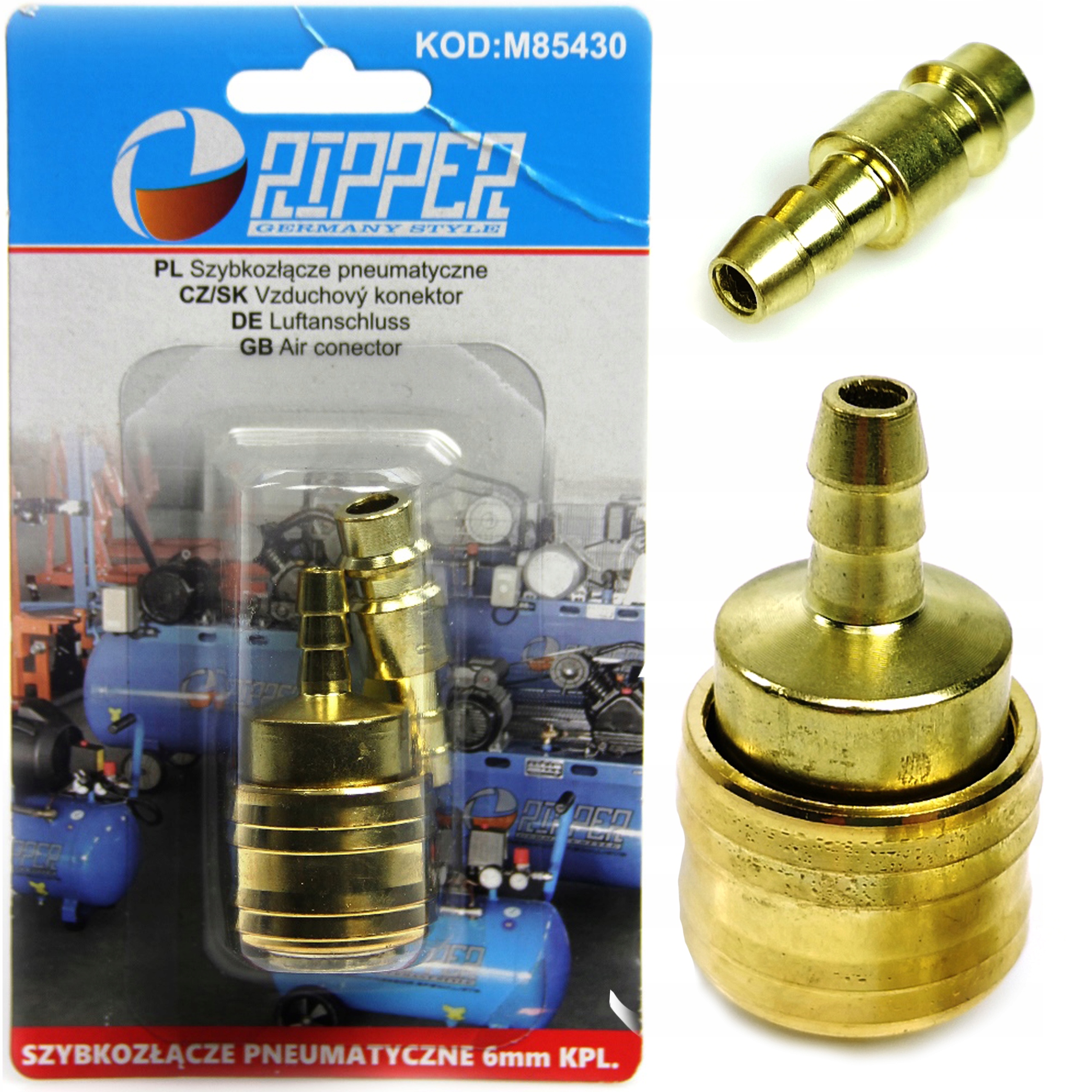 Złącze o zastosowaniu uniwersalnym, wykonane z mosiądzu.Zamknięty korpus zewnętrzny zabezpiecza części wewnętrzne przed zanieczyszczeniami.Poprzez zastosowanie hartowanych kołków ryglujących możliwa jest współpraca z narzędziami wyposażonymi we wtyczki stalowe. SZYBKOZŁĄCZE PNEUMATYCZNE 6mm KPL. MĘSKIE + ŻEŃSKIE Wykonane z wysokiej jakości materiałów i dbałością o szczegóły co gwaranatuje znakomitą jakość wykonania kompletu szybkozłącz pneumatycznych Przeznaczenie: sprężone powietrze, woda, smar, farba