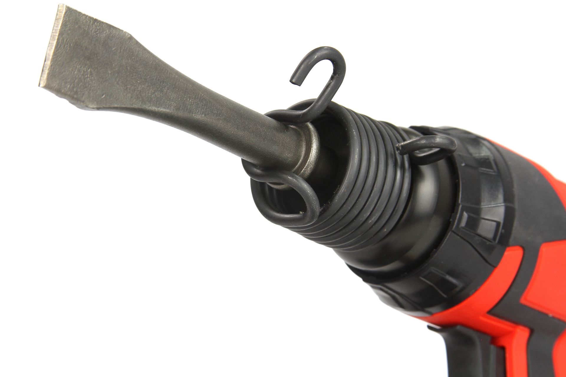 Młotek pneumatyczny w zestawie z dłutami, do cięcia, dłutowania i przebijania metalu, niezastąpiony przy pracach blacharskich, instalatorskich i budowlanych. W zestawie cztery dłuta i sprężyna do młotka. Młotek pneumatyczny o prostej, solidnej konstrukcji zaprojektowanej z uwzględnieniem norm wytrzymałościowych przedłużających okres eksploatacji. Gumowany uchwyt zapewnia pewny chwyt podczas pracy. Zastosowanie wymiennych wkładów daje możliwość dowolnego doboru ilości igieł czy dłut w zależności od wymagań pracy. Cechami charakterystycznymi młotka pneumatycznego są wysoka jakość wykonania, niewielki koszt eksploatacji oraz wszechstronność zastosowania.》》》 MŁOT PNEUMATYCZNY MŁOTEK UDAROWY + 4 DŁUTA ZESTAW M90325 《《《