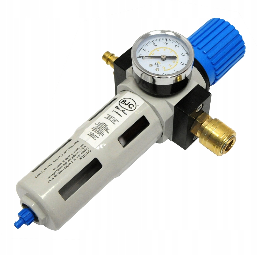 Regulator z odwadniaczem i filtrem służy do regulacji ciśnienia roboczego w układach pneumatycznych oraz do kompensacji ewentualnych odchyłek ciśnienia. Ten produkt jest idealnym dodatkiem do każdej instalacji pneumatycznej. Jego przeznaczeniem jest oczyszczenie powietrza z cząstek stałych, resztek oleju oraz innych zanieczyszczeń z kondensatu. Filtr nie wymaga dodatkowych mocowań, utrzymuje się na nyplu lub złączce, którą będzie przymocowany do kompresora. Wyposażony został również w uchwyty, którymi można przykręcić go do ściany. Opróżnianie wody polega na odkręceniu zaworu umieszczonego u dołu filtra. Wyposażony jest w metalową osłonę zbiornika. Reduktor jest bardzo precyzyjny i masywny a manometr wyraźnie opisany z podziałką w barach lub megapikselach. ✅ Dane techniczne: