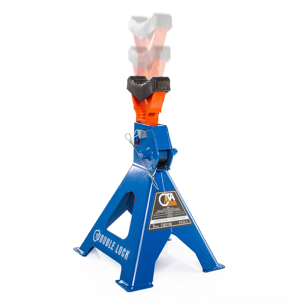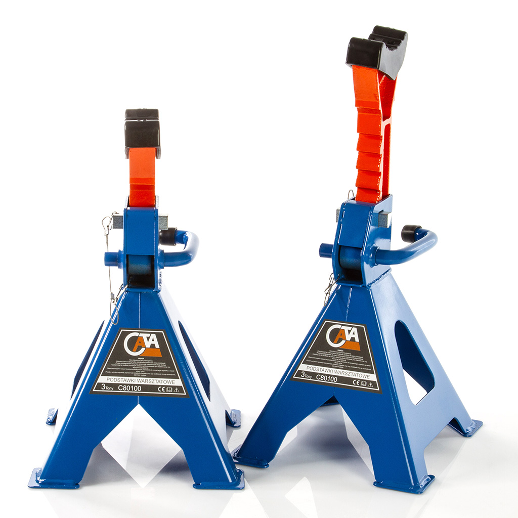 Podstawki warsztatowe z podwójną mechaniczną blokadą. Wykonane z grubej stali. Podstawki warsztatowe w zestawie z gumą zabezpieczającą. Siodło z gumą znacznie poprawia obsługę. Powgniatane progi, zdarty lakier na podciągach, to wcale nie są drobne usterki, ich usunięcie bywa bardziej kosztowne od np. polakierowania wgiętego błotnika. Dlatego lepiej postawić na kobyłki z dużym siodłem wyposażonym w gumę zabezpieczającą. Kobyłki wyposażone są w podwójna blokadę mechaniczną zapewniającą maksimum bezpieczeństwa. Malowana proszkowo gruba stal. Wzmocnione szerokie podstawy. Kobyłki mogą utrzymać utrzymać przedmioty o masie do 3 ton. Wykonane są z wysokiej jakości materiałów: m. in. grubej, stalowej blachy. Posiadają mechanizm zapadkowy, który umożliwia bardzo precyzyjne ustawienie wysokości na wielu poziomach. Dźwignia blokująca skutecznie zabezpiecza podpór w wybranym położeniu. Wykonane są z wytrzymałej stal i i charakteryzują się solidną, spawaną konstrukcją. Nogi podstawek posiadają przyspawane, szerokie stopki, stabilizujące kobyłki w trakcie pracy pod obciążeniem. Blokada służąca do regulacji wysokości, wykonana z grubej stali o dużej średnicy. Komplet malowany proszkowo - co znacznie zwiększa wytrzymałość powłoki. Posiadają szeroki zakres regulacji: