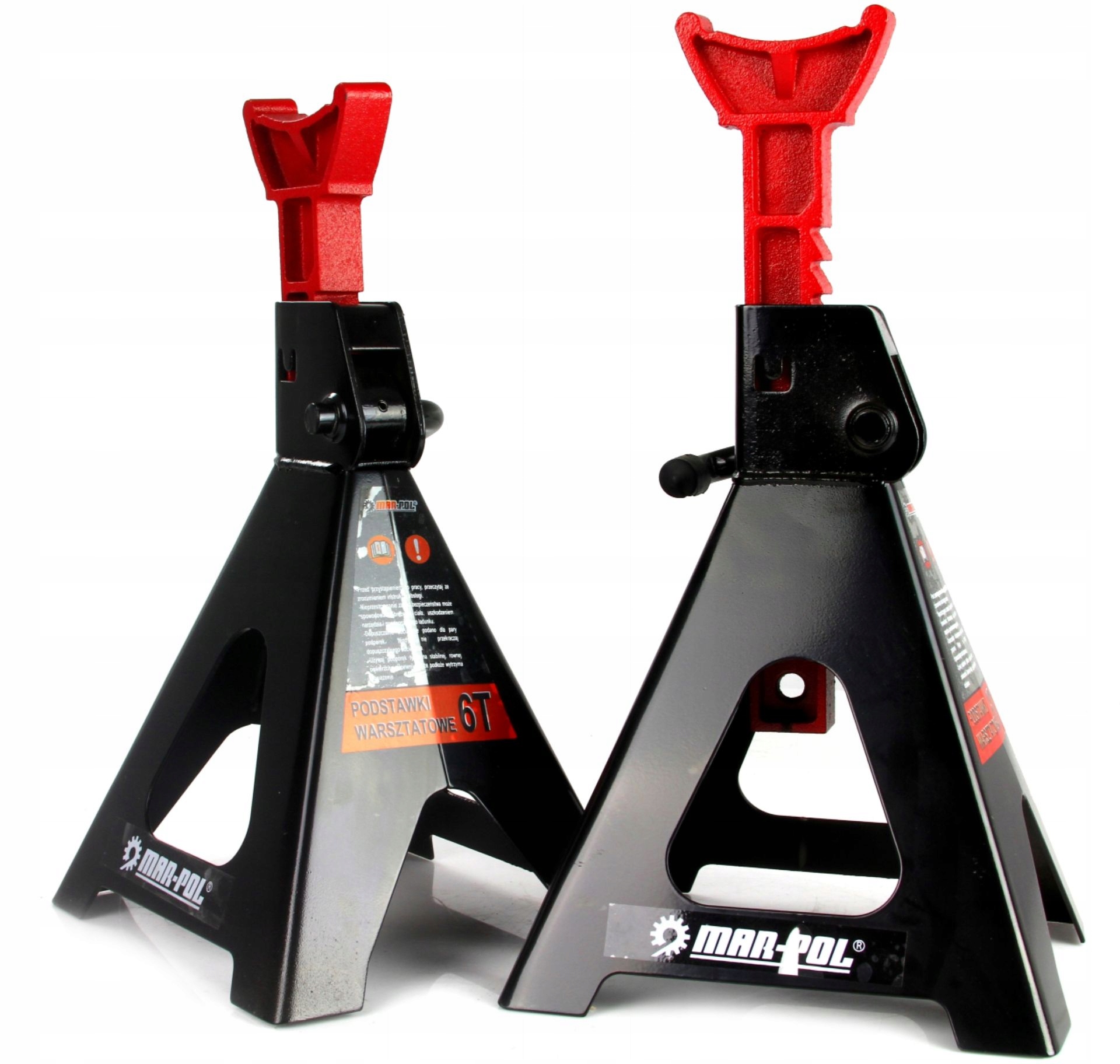 Kobyłki mogą utrzymać przedmioty o masie do 6 ton . Wykonane są z wysokiej jakości materiałów: m. in. grubej, stalowej blachy. Posiadają mechanizm zapadkowy, który umożliwia bardzo precyzyjne ustawienie wysokości na wielu poziomach. Podstawki zapewniają bezpieczne i stabilne podparcie auta na specjalnie wyprofilowanych siodełkach. Dźwignia blokująca skutecznie zabezpiecza kolumny podpór w wybranym położeniu. Wykonane są z wytrzymałej stali i charakteryzują się solidną, spawaną konstrukcją. Nogi podstawek posiadają przyspawane, szerokie stopki, stabilizujące kobyłki w trakcie pracy pod obciążeniem. ✅ Dane techniczne