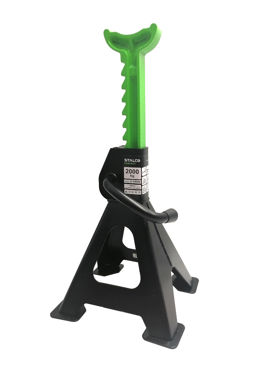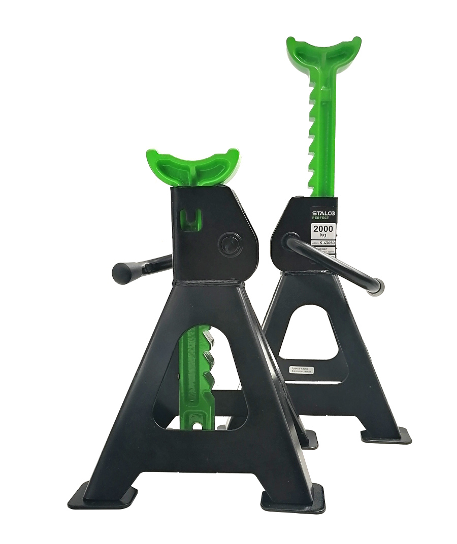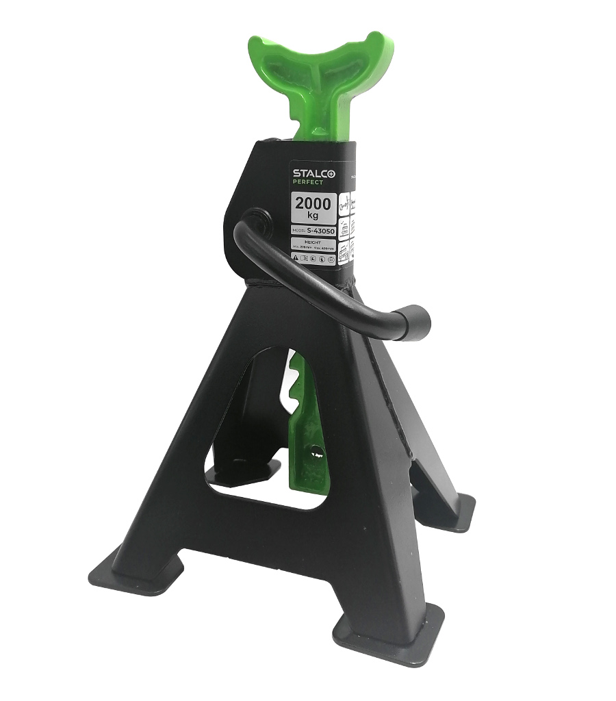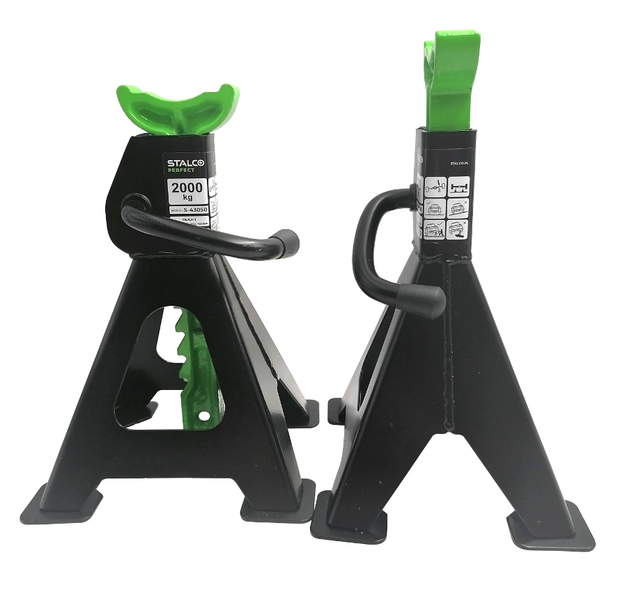 Stabilne podstawki umożliwiają zabezpieczenie podniesionego ładunki i odciążenie lewarka. Specjalny mechanizm pozwala na szybkie zablokowanie podstawki na żądanej wysokości. Zapewniają stabilną pozycję samochodu na równej powierzchni oraz bezpieczeństwo pracy. Komplet zawiera dwie sztuki. ✅ Dane techniczne :