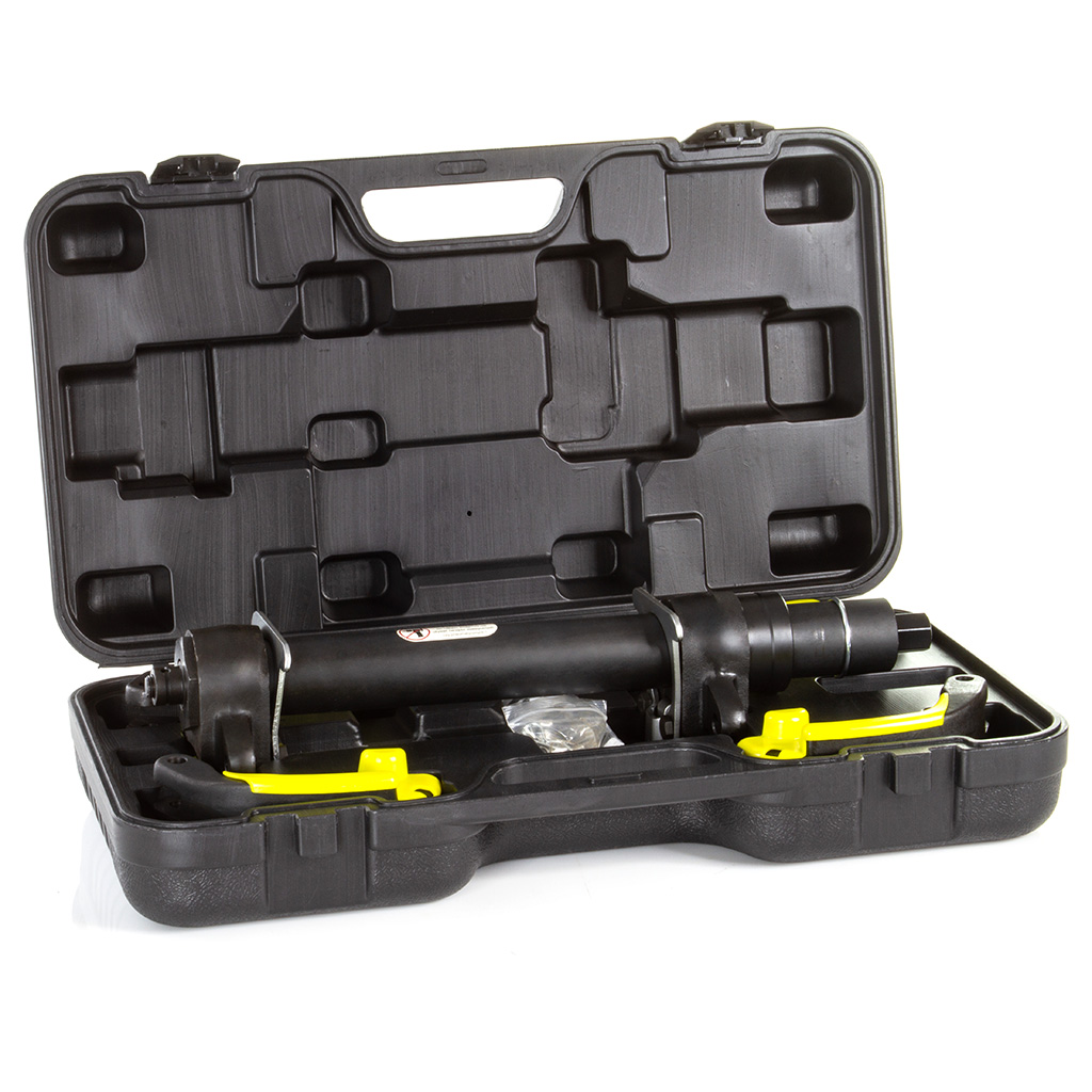 Ściągacz do sprężyn McPherson w samochodach osobowych i dostawczych. Posiada dwie blokady bezpieczeństwa zapobiegające zsunięcie się sprężyn przy ich ściskaniu. Rozstaw szczęk 100-250mm, ściągacz współpracuje z grzechotką 1/2"