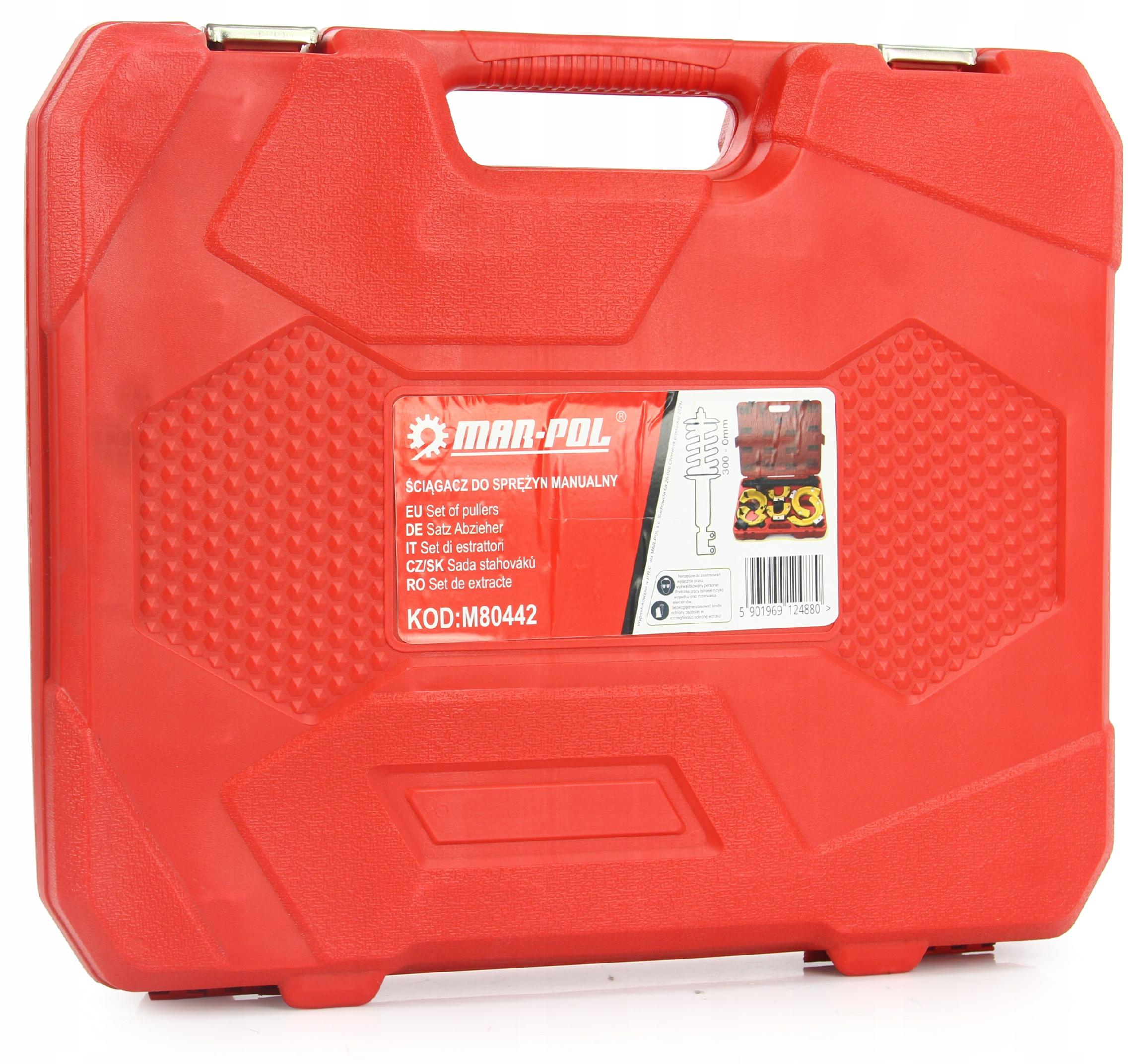 Profesjonalny zestaw do ściągania sprężyn w samochodach osobowych i dostawczych. Nasz zestaw ceniony jest za uniwersalność- można stosować w wielu samochodach. Wszystkie elementy zestawu wykonano z bardzo wytrzymałej grubej stali, która wytrzymuje duże siły ścisku. Zaletą tego typu ściągaczy jest wysoka siła ściskania rozłożona na dużą powierzchnię, unikamy tym samym uszkodzeń sprężyn i niebezpieczeństwa zerwania ściągacza. Ściski posiadają nakładki które zabezpieczają przed porysowaniem sprężyny. Dodatkowo ściągacza można używać bez wyciągania kolumny. Nasz zestaw ceniony jest za swą uniwersalność i pasuje do większości kolumn w samochodach osobowych i dostawczych. Dodatkowo zestaw zawiera adapter który pozwala na pracę ze sprężynami progresywnymi różnymi rodzajami. Dzięki adapterowi można używać zestawu nie tylko do zwykłych sprężyn, ale także do stożkowych sprężyn.ŚCIĄGACZ SPRĘŻYN MECHANICZNY MOCNY 1,5t MCPHERSON M80442