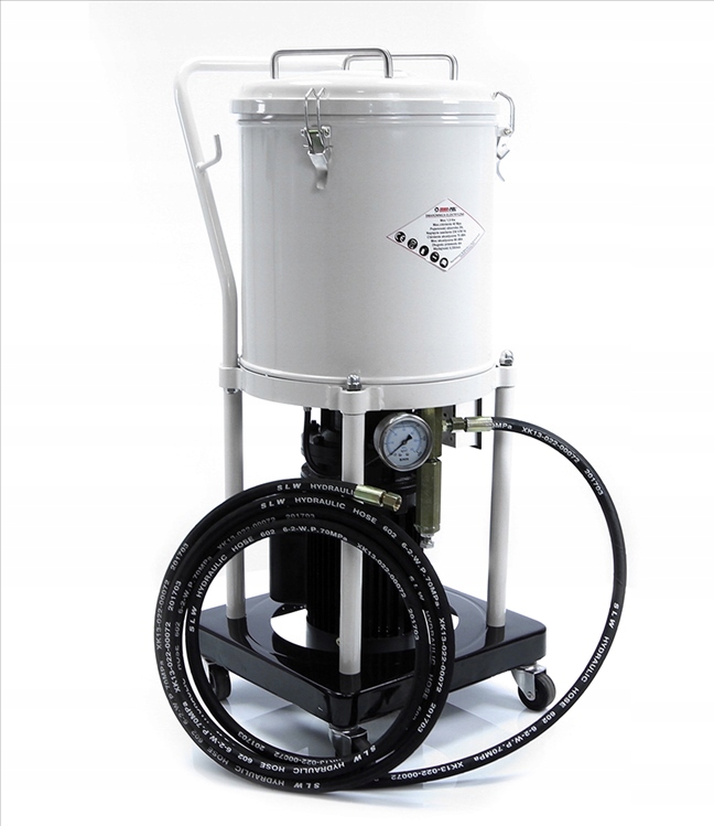 Smarownica elektryczna 20l. Smarownica jest urządzeniem służącym do smarowania pod ciśnieniem elementów mechanicznych typu wały, sworznie, łożyska, przeguby itp. Wykonana jest ze stalowego cylindra o pojemności 20l i napędzana jest silnikiem elektrycznym o mocy 1,5kW. Całość została wykonana wykonany wysokiej jakości materiałów odpornych na długotrwałe działanie smarów i olejów. Smarownica przeznaczona jest do warsztatów, fabryk, zakładów i wszędzie tam, gdzie znajdziemy elementy wymagające smarowania. W zestawie dwie końcówki, sztywna oraz giętka pasująca do większości kalamitek.》》》 SMAROWNICA ELEKTRYCZNA TAWOTNICA TOWOTNICA 20L 1,5 kW M78065 《《《