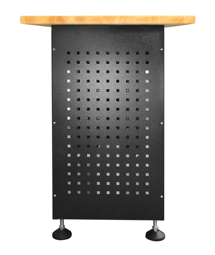 Solidna konstrukcja stołu zapewnia stabilność nawet podczas pracy z ciężkimi przedmiotami, co jest istotne dla bezpieczeństwa i precyzji wykonywanych zadań. Stół został wyposażony w dwie pojemne szuflady do przechowywania narzędzi. Można w prosty sposób przechowywać narzedzia w dostępnych na rynku wkładkach narzędziowych. Każda szuflada jest wyposażona w płynnie przesuwaną prowadnicę kulkową a także w funkcjonalny uchwyt. Szuflady wyposażone w zamek, który umożliwia zabezpieczenie szuflad przed otwarciem. Dodatkowo po obu stronach stołu znajdują się kratki na których możemy powiesić dowolne narzędzia. ✅ Dane techniczne : Stopki poziomujące wyrównują nierówne / nieregularne podłoże, chronią podłogę i blokują przedostawanie się wilgoci.
