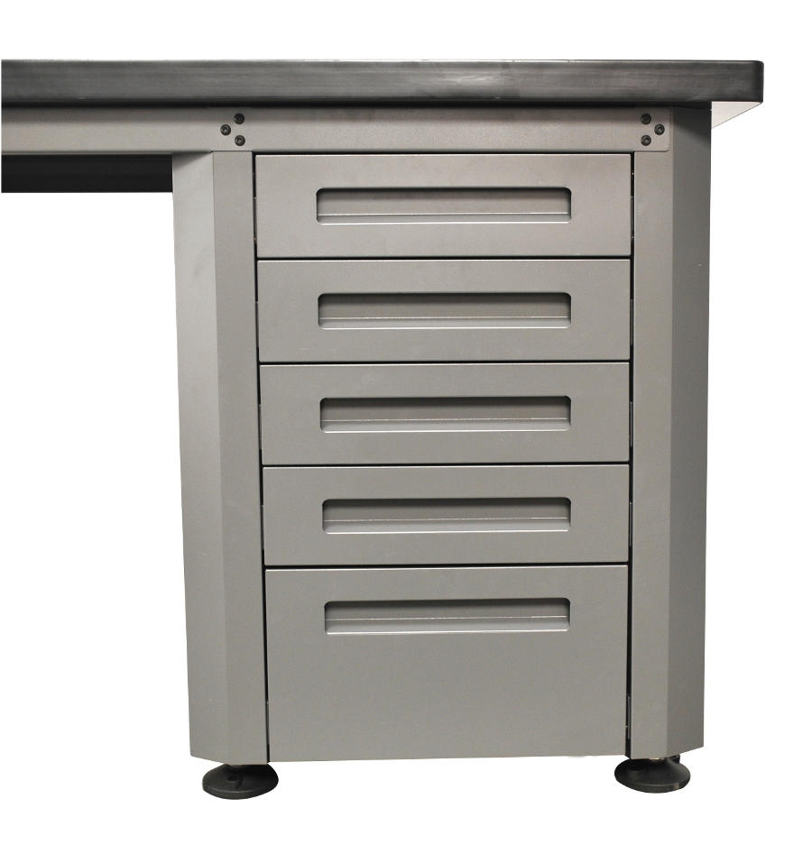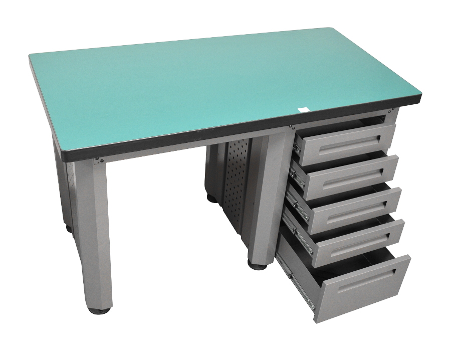 Stół został wyposażony w pięć pojemnych szuflady do przechowywania narzędzi.