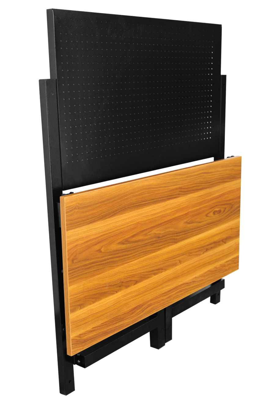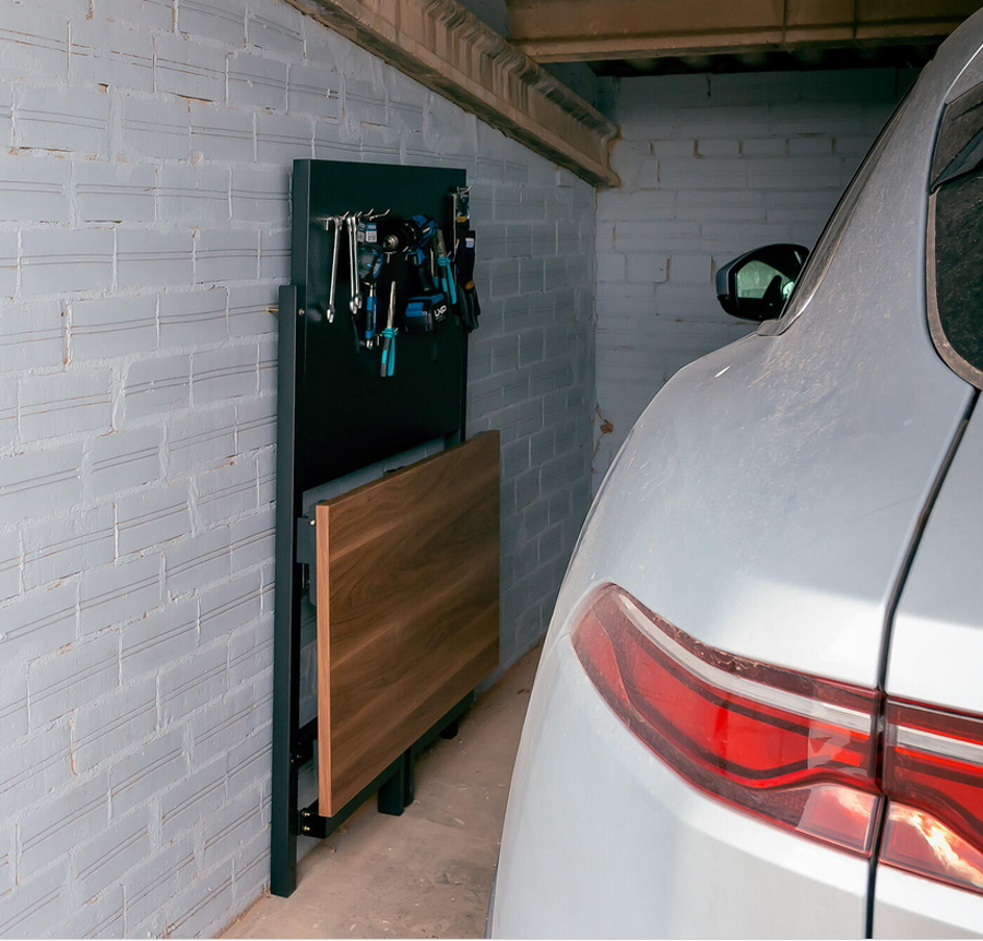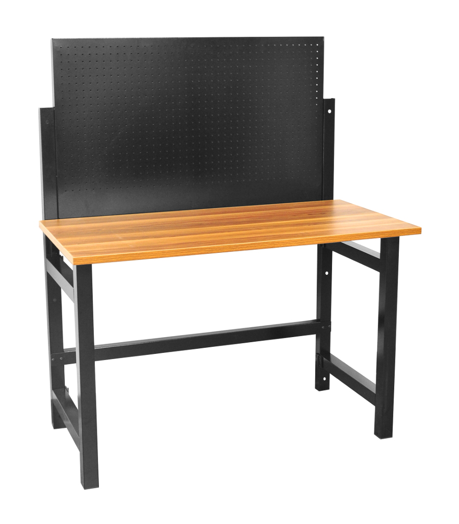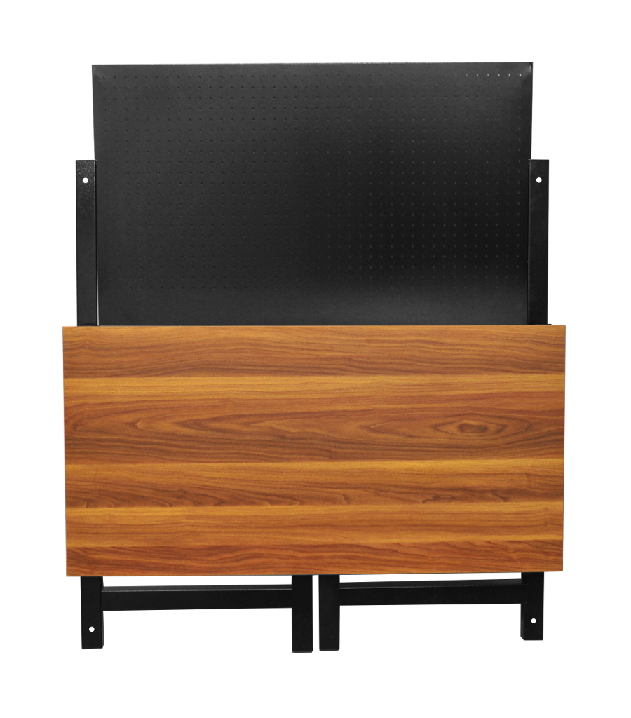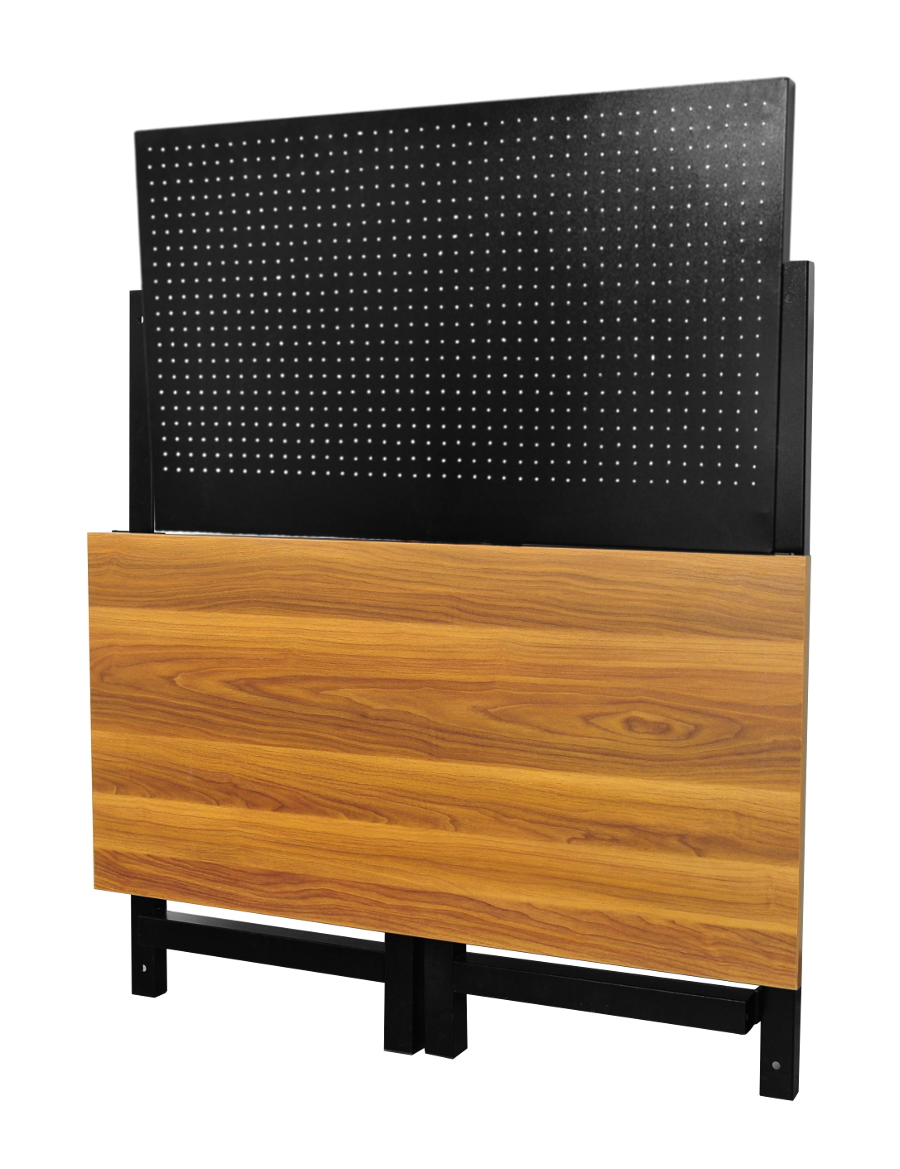 Składany stół warsztatowy to idealne rozwiazanie dla dużych warsztatów jak i małych garaży. Jego kompaktowa konstrukcja pozwala oszczędzić dużo miejsca w stosunku do klasycznych stołów roboczych. W pozycji złożonej stól ma głębokość tylko 12cm, co czyni go bardzo kompaktowym. Wymiary blatu 120x60x2,5cm oferuje solidną powierzchnię do pracy. Stół roboczy został osadzony na mocnym składanym metalowym stelażu na wysokości 80cm. Dodatkowo stół ma zamocowaną tablicę narzędziową wykonaną z blachy perforowanej o wymiarach 105x64cm, umożliwia to powieszenie najpotrzebniejszych narzędzi. Waga stolika ok 30kg. W zestawie znajdują się kotwy kołki montażowe do przytwierdzenia stołu do ściany, co zwiększy komfort użytkowania.