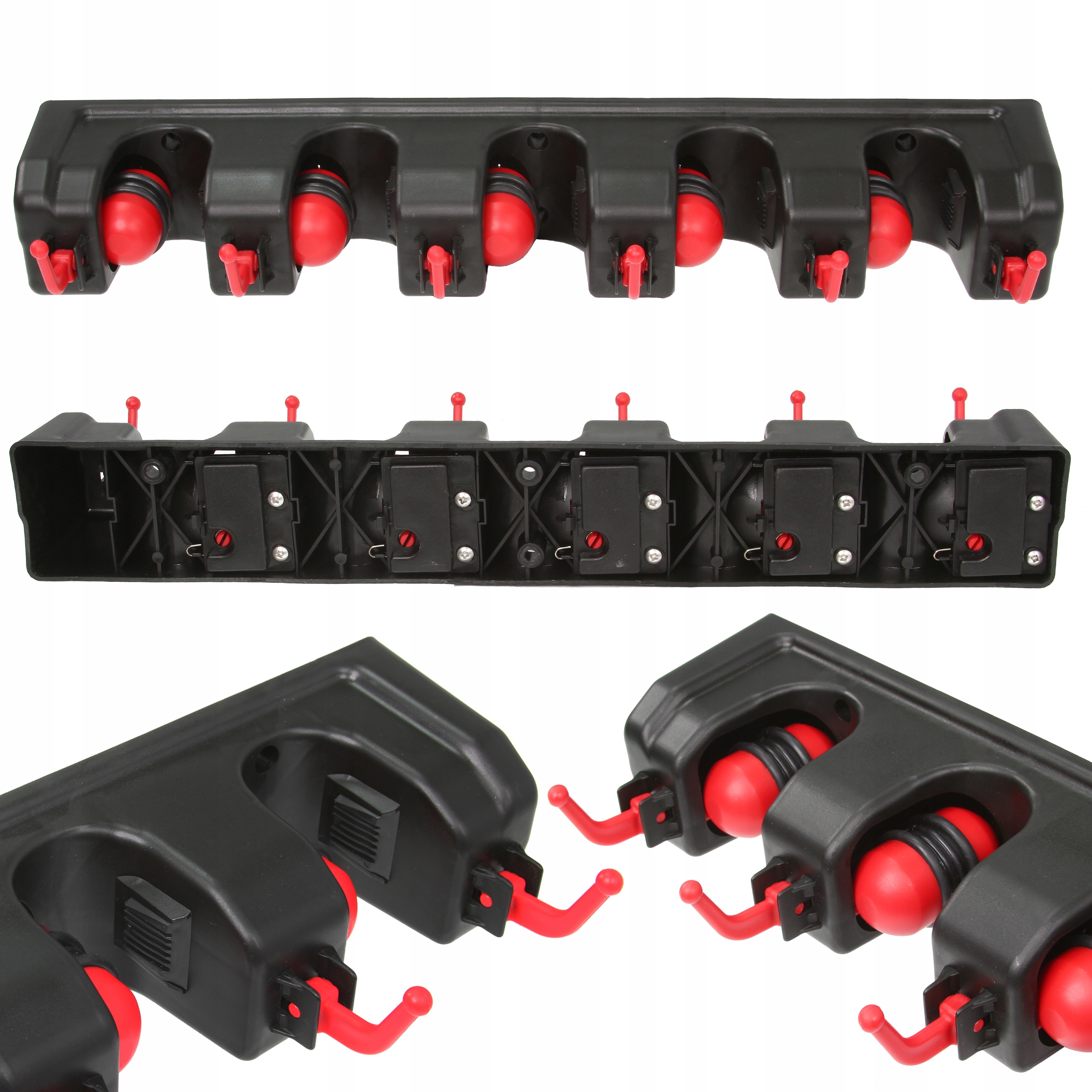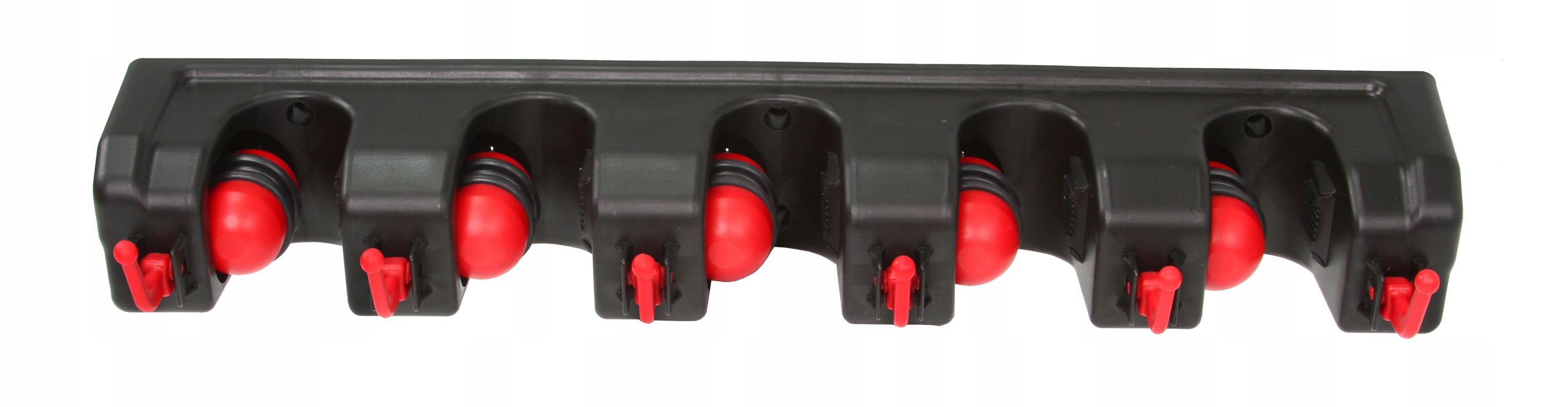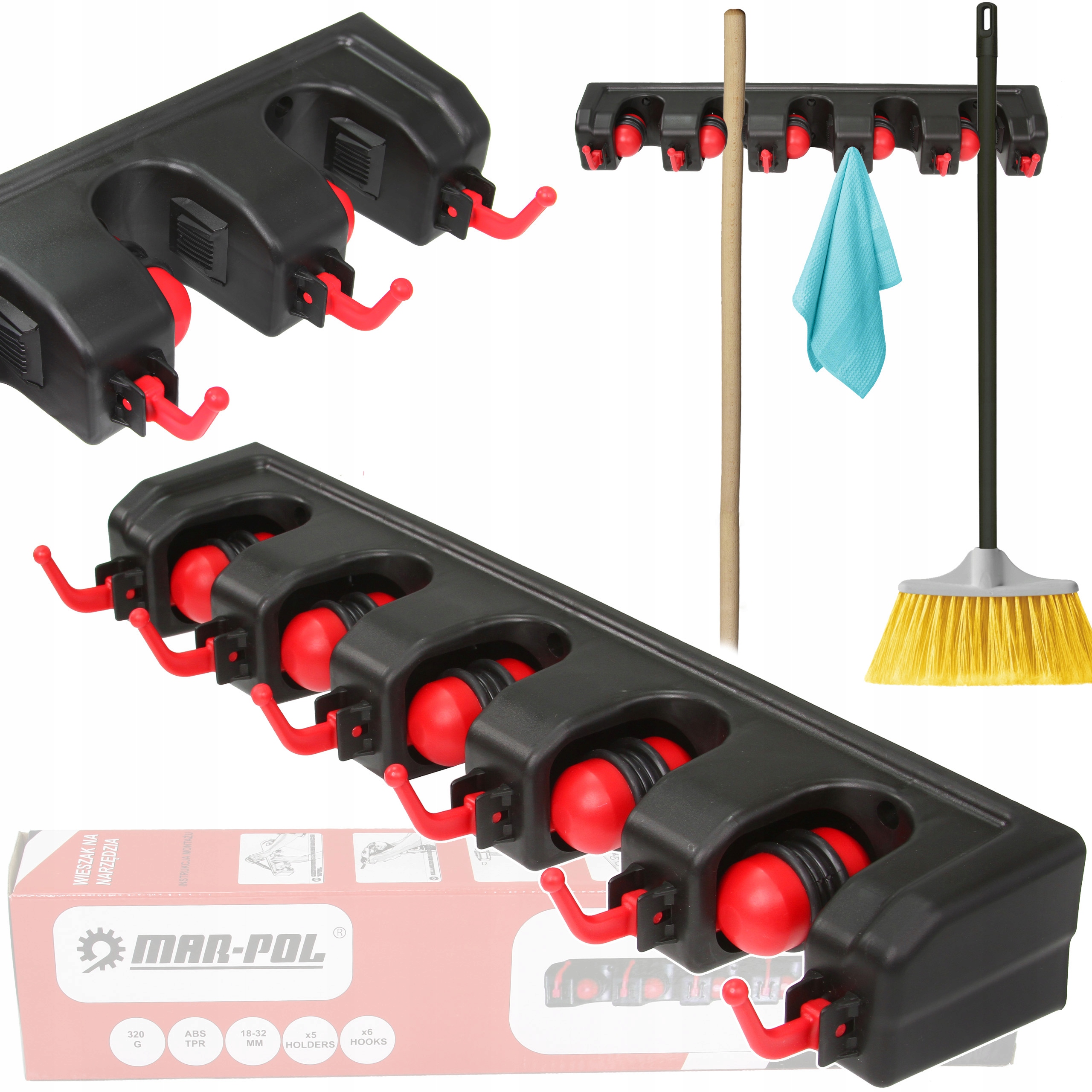 Niezwykle praktyczny garażowy wieszak ścienny na narzędzia ogrodowe. Wyposażony został w aż 5 automatycznych uchwytów, które same dopasowują się do grubości trzonka narzędzia (do maksymalnie 32 mm), dzięki samozaciskowej kulce oraz gumie ze stoperem. Zawiesisz na nim wszystkie standardowe grabie, miotły i mopy w należytym porządku! Uchwyt posiada ponadto 6 dodatkowych składanych wieszaków, które umożliwiają zawieszenie drobniejszych narzędzi jak np. grabki. Wieszak doskonale sprawdzi się jako element porządkujący ogrodowe narzędzia w garażu czy przydomowym składziku. Zadbaj o porządek w swojej ogrodowej szopie już dziś! ✔️Dociski uchwytów są sprężynowe co pozwala wygodnie zawieszać i wyciągać narzędzia. ✔️ Haczyki można złożyć idealnie licując je z powierzchnią wieszaka. ✔️ Zakres uchwytu: 18-32 mm ✔️ Materiał: PP + TPR ✔️ Waga: 325 g