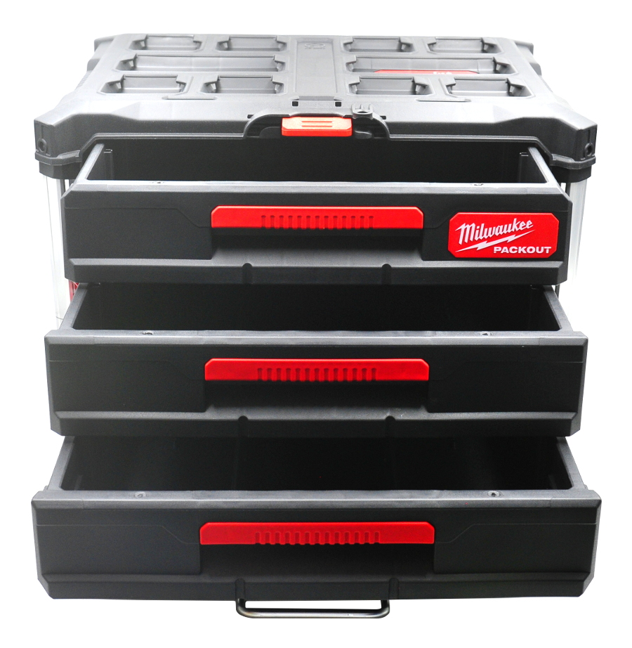 Milwaukee Packout 4932472130 z 3 szufladami jest częścią stale popularnego systemu skrzynek, które można układać w stosy i łączyć ze sobą. Skrzynka narzędziowa z 3 szufladami umożliwia łatwy dostęp do narzędzi i idealnie nadaje się do personalizacji. Każda szuflada udźwignie do 11 kg i porusza się na prowadnicach z łożyskami kulkowymi. Duży drążek blokujący zapobiega przypadkowemu i niechcianemu otwarciu szuflad podczas transportu. Każda szuflada jest wyposażona w zestaw przegródek, które umożliwiają personalizację w zależności od potrzeb i zadania. Skrzynka narzędziowa wykonana jest z odpornych na uderzenia polimerów i narożników wzmocnionych metalem, aby wytrzymać trudne warunki w miejscu pracy.》》》 SKRZYNIA NARZĘDZIOWA MODUŁOWY ORGANIZER SKRZYNKA PACKOUT 3 SZUFLADY 4932472130 《《《