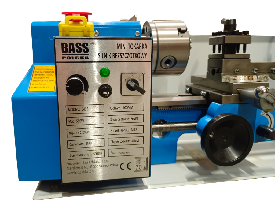 Kompaktowa tokarka stołowa do metalu o zwartej, solidnej konstrukcji, dedykowana małym warsztatom, zakładom rzemieśliniczym, modelarzom i hobbystom, do toczenia wzdłużnego, poprzecznego i gwintowania. Mała tokarka stołowa została optymalnie przystosowana do obrabiania stali, metali nieżelaznych i materiałów sztucznych. Podzespoły najwyższej klasy zapewniają doskonałą wydajność obróbki i bezawaryjność urządzenia. ✅ DANE TECHNICZNE:》》》 MINI TOKARKA STOŁOWA 550W, 350mm BASS POLSKA ® BP-5426 《《《