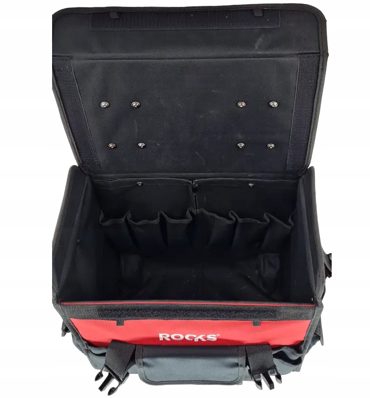 Świetna, praktyczna i super mocna torba narzędziowa posiada idealne wymiary: 39x37x25 cm, dzięki temu jest bardzo pakowna, może zmieścić dużo cennych narzędzi, które zabierasz ze sobą do pracy. Torba jest do tego na tyle kompaktowa i uniwersalna, że zmieści się nawet do niewielkiego bagażnika, czy przestrzeni w luku bagażowym. Torba ma pojemność aż 36 litrów, miękkie, cichobieżne koła, oraz teleskopową rękojeść, która umożliwia łatwy transport ciężkich narzędzi. Torba jest wykonana ze wzmacnianego włókna nylonowego, ma potrójne ścianki ze wzmocnieniem wewnątrz, system MULTIPOKET, który zapewnia perfekcyjne ułożenie małych narzędzi w kieszeniach wewnątrz i na zewnątrz torby. Dodatkowo torba ROOKS posiada 3 pasy zabezpieczające, które umożliwiają noszenie nawet największych ciężarów wewnątrz torby. Torba narzędziowa na kołach STRONG to idealne rozwiązanie dla każdego profesjonalisty, który dba o swój warsztat pracy.