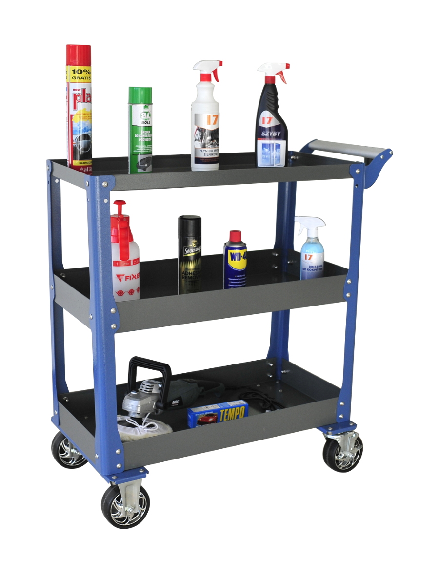 Idealnie nadaje się do warsztatów, serwisów, a także jest dobrym rozwiązaniem dla majsterkowicza oraz osób zajmujących się car detailingiem. Ułatwia pracę, gdyż każde narzędzie masz zawsze pod ręką. Wyposażony został w cztery kółka dwa stała i dwa skrętne z blokadą oraz metalową rączkę co ułatwia jego poruszanie. ✅ DANE TECHNICZNE: Na pozostałych naszych ofertach znajdą Państwo inne modele wózków.