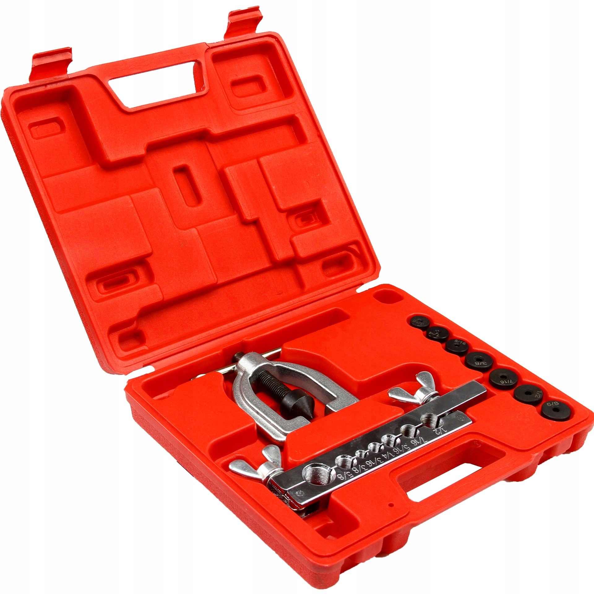 Uniwersalny zestaw do zarabiania przewodów hamulcowych i rurek. Dedykowany do warsztatów samochodowych, motoryzacyjnych i serwisowych a także majsterkowiczom i do zastosowań w przydomowym warsztacie. Do zarabiania końcówek hamulcowych oraz mechanizmów hydraulicznych w samochodach i sprzętach. Do manualnego rozszerzania i zagniatania przewodów i rurek różnego rodzaju. Do końcówek przewodów wykonanych z m.in. z aluminium czy miedzi. W zestawie znajdują się najpopularniejsze końcówki umożliwiające zarobienie przewodu hamulcowego do większości samochodów dostępnych na rynku europejskim i amerykańskim. Solidnie wykonana zarabiarka odporna na pęknięcia i uszkodzenia. Całość zestawy umieszczona w poręcznej, ułatwiającej transport i przechowywanie walizce. 》》》 ZESTAW DO ZARABIANIA PRZEWODÓW HAMULCOWYCH PRASKA M57750 《《《