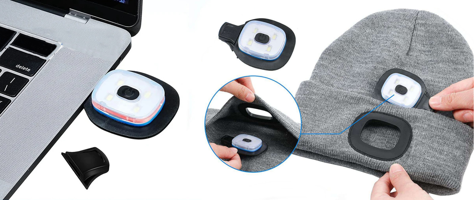》》》 CIEPŁA CZAPKA ZIMOWA LAMPKA LED ŁADOWANA USB AKUMULATOROWA LATARKA CZOŁOWA FX17011 《《《