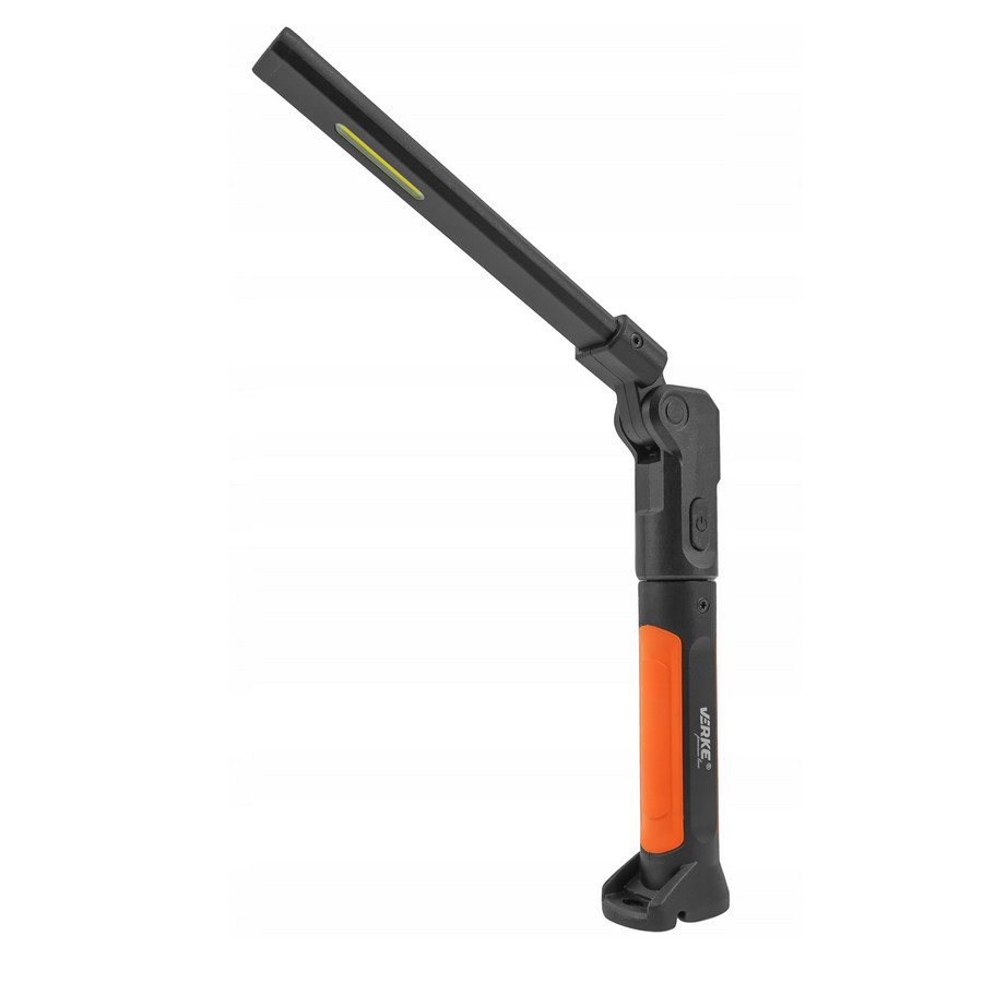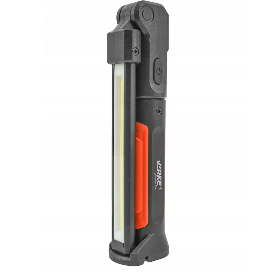 Latarka warsztatowa VERKE V87515 sprawdzi się zarówno w rękach profesjonalistów jak i domowych majsterkowiczów. Posiada wbudowany magnes oraz hak do zawieszenia, co pozwoli na zamocowanie latarki w każdych warunkach. ✅ Dane techniczne : Latarka posiada tryb stały o mocnym nasileniu. Latarka jest odporna na trudne warunki atmosferyczne. Wykonanie z najwyższej jakości materiałów wraz z najwyższą starannością wykonania pozwalają na zastosowanie latarki w nawet najcięższych warunkach. Latarka warsztatowa wyposażona została w listwę LED o mocy strumienia świetlnego o wartości aż 700 lumenów. Pokrętło na obudowie pozwala regulować natężenie światła, a wbudowany akumulator 2000mAh może świecić nawet do 6h. Sposób ładowania USB pozwala wygodnie ładować lampę w dowolnym miejscu przy użyciu powerbanka, laptopa, adaptera sieciowego i wielu innych. W zależności od wybranego trybu możesz używać światło czołowe lub boczne. Po każdym naciśnięciu przycisku lampki zapala się kolejno: - światło punktowe (100 lm, 6 godz. pracy) - światło główne 40% (280 lm, 4,5 godz. pracy) - światło główne 100% (700 lm, 2,0 godz. pracy) - światło wtórne (300 lm, 4,5 godz. pracy). Jeśli lampka pozostaje włączona przez ponad 5 sekund, po następnym naciśnięciu przycisku lampka się wyłączy z zapamiętaniem stanu (zapali się w tej samej pozycji). 180° obrotowy korpus z mocnym magnesem do oświetlenia pod wieloma kątami, pozwala skupić światło w razie potrzeby na dowolne miejsce.