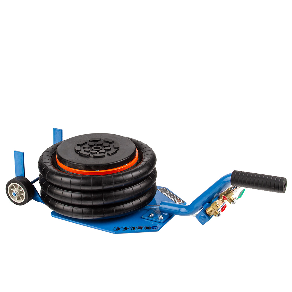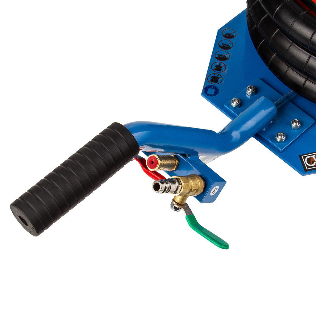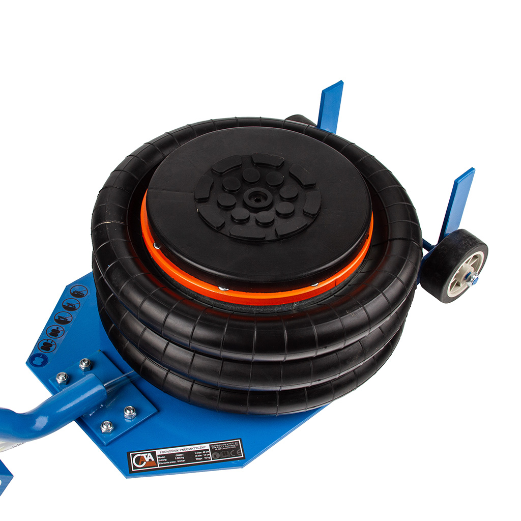Podnośnik pneumatyczny typu „bałwanek” o udźwigu 3,5 tony wyróżnia się zwartą, kompaktową konstrukcją oraz ergonomicznie zaprojektowaną rączką, która umożliwia łatwe manewrowanie nawet w trudno dostępnych miejscach. Został wykonany z materiałów najwyższej jakości, co gwarantuje trwałość oraz bezpieczną pracę przy podnoszeniu ciężkich pojazdów i maszyn. Urządzenie przeznaczone jest do intensywnego użytkowania w warsztatach samochodowych, punktach wulkanizacyjnych, gospodarstwach rolnych oraz wszędzie tam, gdzie konieczne jest unoszenie dużych obciążeń. Solidna, stalowa konstrukcja z możliwością demontażu rączki zwiększa wygodę transportu i przechowywania. Podnośnik posiada trzywarstwowe miechy gumowe wykonane z wytrzymałego kauczuku, a umieszczony wewnątrz teleskop stabilizujący zapewnia pewność i bezpieczeństwo podczas pracy. Malowanie proszkowe skutecznie chroni elementy stalowe przed korozją. Wyprofilowana rączka z antypoślizgowym uchwytem z karbowanej gumy ułatwia obsługę, a kółka o średnicy 60 mm z trwałego tworzywa umożliwiają łatwe wsunięcie podnośnika pod podwozie pojazdu. Zastosowane zawory kulowe 3/8” z czytelnym oznaczeniem kolorystycznym (zielony – zasilanie, czerwony – spust) zapewniają intuicyjną obsługę. Dodatkowe bezpieczeństwo gwarantuje zawór bezpieczeństwa, który chroni miechy przed uszkodzeniem przy przekroczeniu ciśnienia 10 bar. Gumowa stopka zapobiega zsuwaniu się podnoszonego elementu, a możliwość ustawienia podnośnika w pionie bez dodatkowego podparcia pozwala zaoszczędzić miejsce w warsztacie lub garażu.》》》 PODUSZKOWY PODNOŚNIK 3500kg PNEUMATYCZNY BAŁWANEK PODUCHA 3,5T C80351 《《《