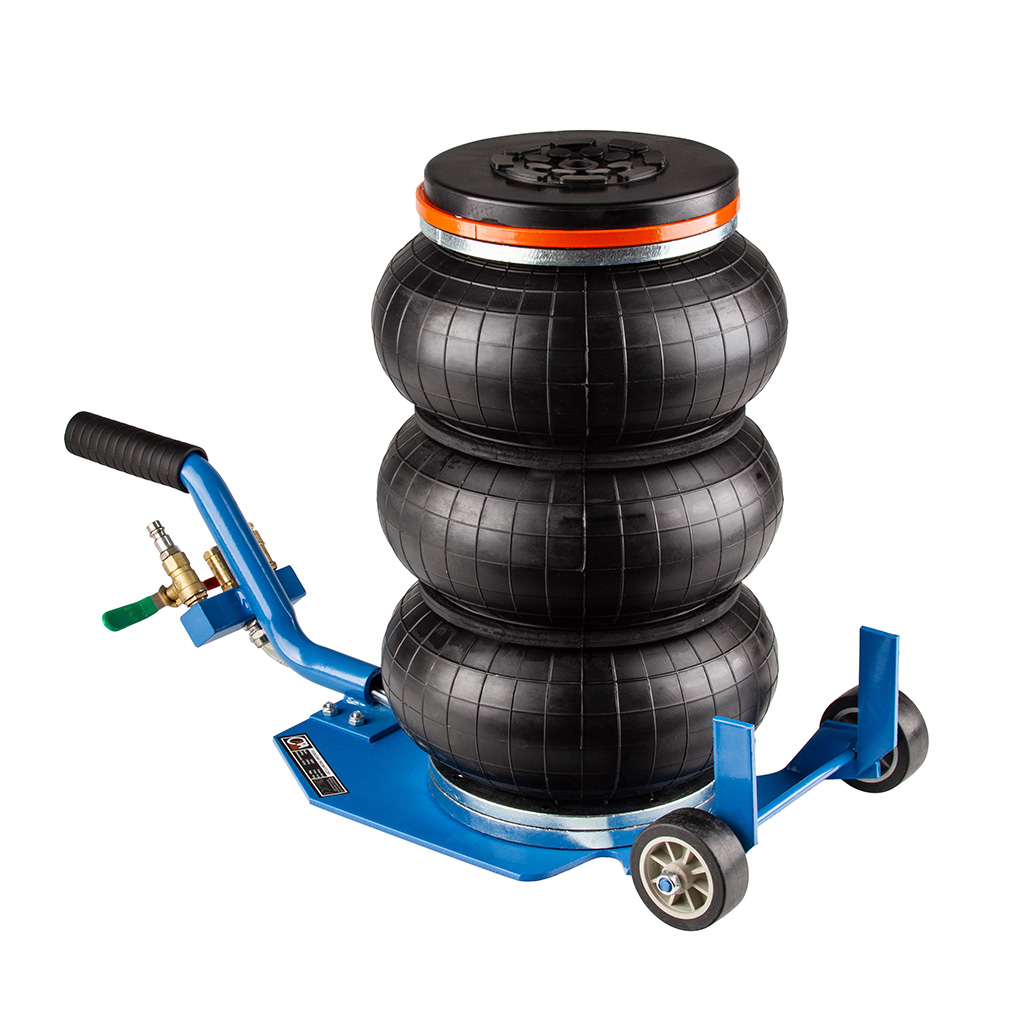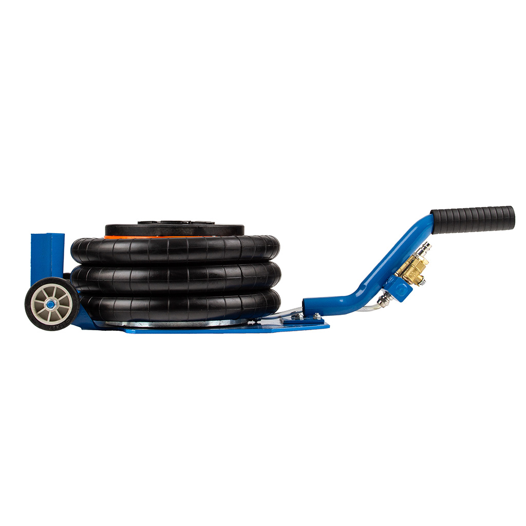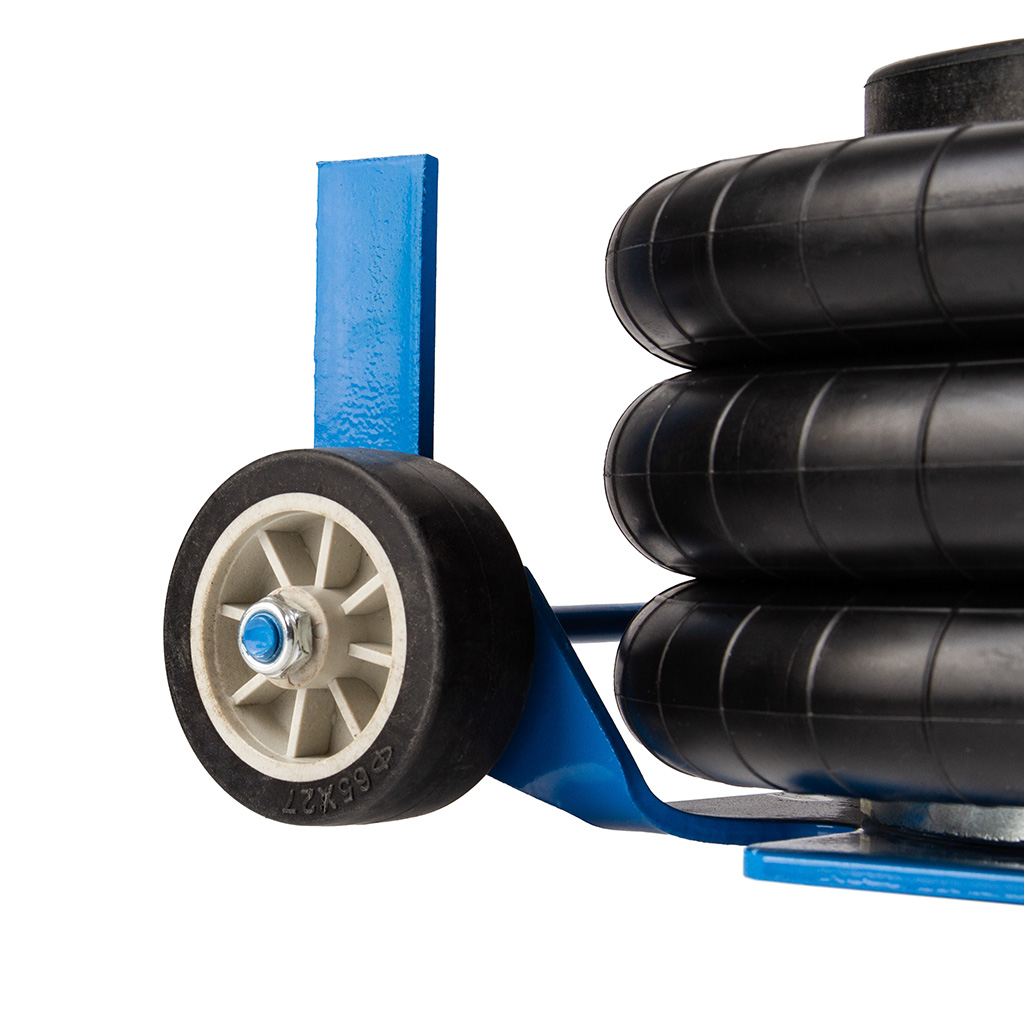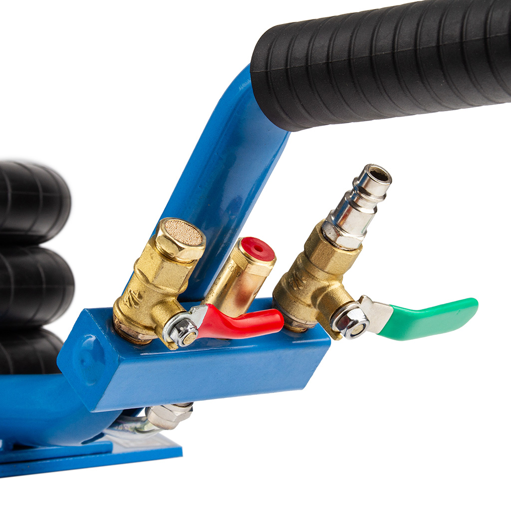 Podnośnik pneumatyczny typu „bałwanek” o udźwigu 3,5 tony wyróżnia się zwartą, kompaktową konstrukcją oraz ergonomicznie zaprojektowaną rączką, która umożliwia łatwe manewrowanie nawet w trudno dostępnych miejscach. Został wykonany z materiałów najwyższej jakości, co gwarantuje trwałość oraz bezpieczną pracę przy podnoszeniu ciężkich pojazdów i maszyn. Urządzenie przeznaczone jest do intensywnego użytkowania w warsztatach samochodowych, punktach wulkanizacyjnych, gospodarstwach rolnych oraz wszędzie tam, gdzie konieczne jest unoszenie dużych obciążeń. Solidna, stalowa konstrukcja z możliwością demontażu rączki zwiększa wygodę transportu i przechowywania. Podnośnik posiada trzywarstwowe miechy gumowe wykonane z wytrzymałego kauczuku, a umieszczony wewnątrz teleskop stabilizujący zapewnia pewność i bezpieczeństwo podczas pracy. Malowanie proszkowe skutecznie chroni elementy stalowe przed korozją. Wyprofilowana rączka z antypoślizgowym uchwytem z karbowanej gumy ułatwia obsługę, a kółka o średnicy 60 mm z trwałego tworzywa umożliwiają łatwe wsunięcie podnośnika pod podwozie pojazdu. Zastosowane zawory kulowe 3/8” z czytelnym oznaczeniem kolorystycznym (zielony – zasilanie, czerwony – spust) zapewniają intuicyjną obsługę. Dodatkowe bezpieczeństwo gwarantuje zawór bezpieczeństwa, który chroni miechy przed uszkodzeniem przy przekroczeniu ciśnienia 10 bar. Gumowa stopka zapobiega zsuwaniu się podnoszonego elementu, a możliwość ustawienia podnośnika w pionie bez dodatkowego podparcia pozwala zaoszczędzić miejsce w warsztacie lub garażu.》》》 PODUSZKOWY PODNOŚNIK 3500kg PNEUMATYCZNY BAŁWANEK PODUCHA 3,5T C80351 《《《