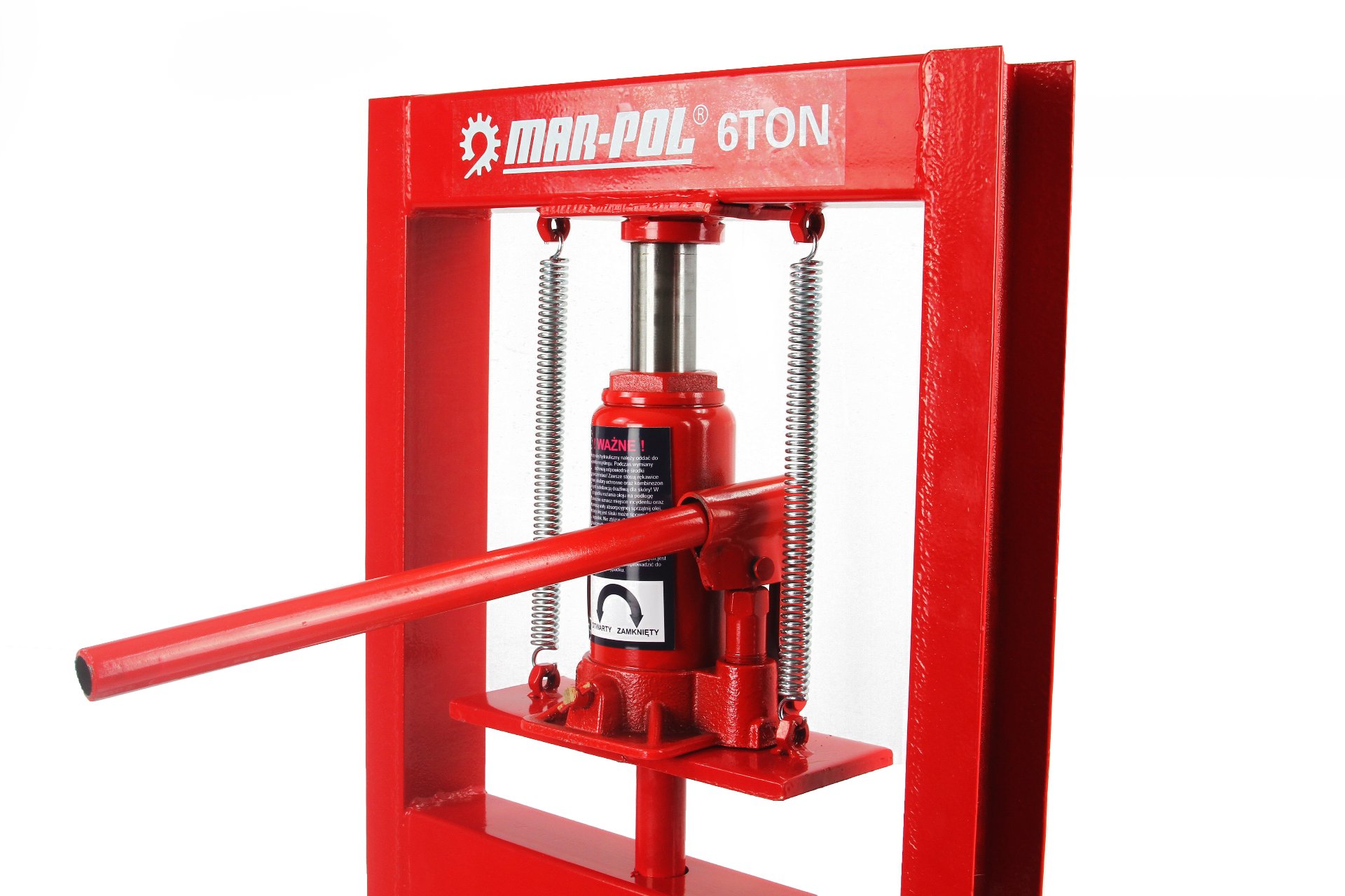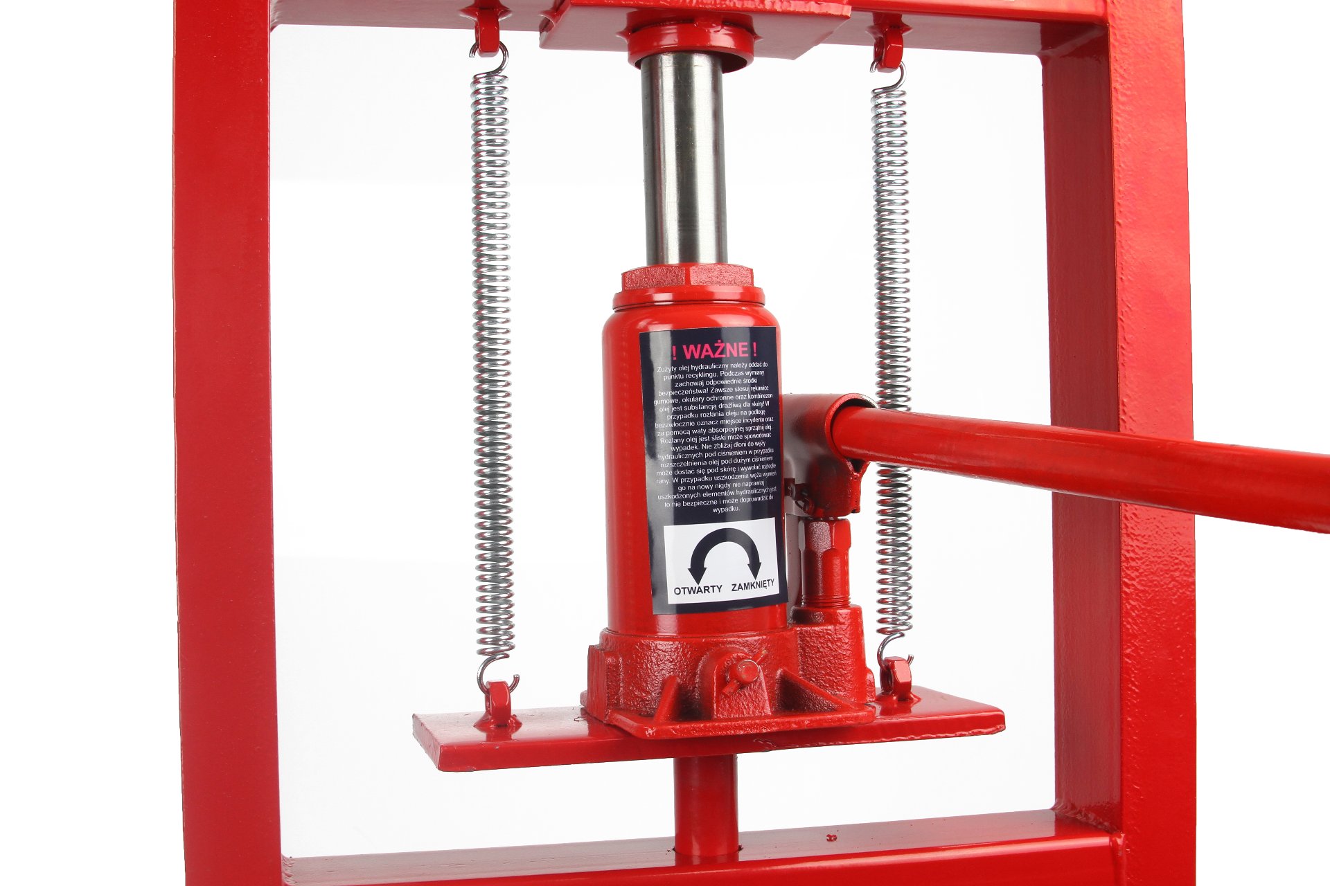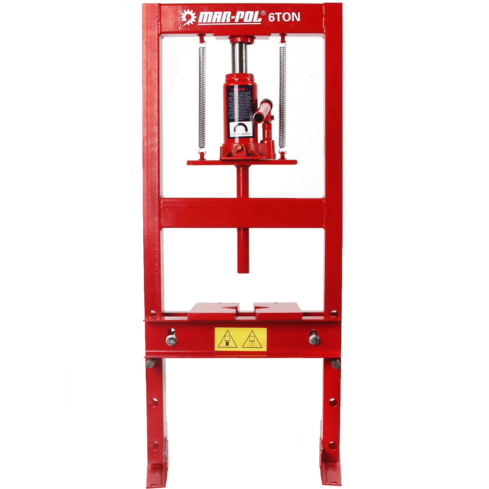 PRASA HYDRAULICZNA O NACISKU 6 TONWykonana ze stalowej konstrukcji, wyposażona w poprzeczną półkę roboczą z 4 poziomową regulacją Urządzenie to jest przeznaczone do prostowania, gięcia, wyciskania, wciskania, przepychania itp. ✅ Parametry techniczne: Prasa została wyposażona w podnośnik z wykręcanym trzpieniem