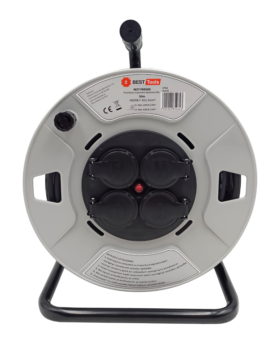Bębnowy przedłużacz elektryczny renomowanej marki narzędziowej BEST TOOLS. Doskonale sprawdzi się w każdy domu, ogrodzie, warsztacie a także na budowie. Wyposażony w bezpiecznik termiczny, który chroni przed przeciążeniem. Charakterystyka produktu: ✔️ wysoka jakość wykonania ✔️ bęben wykonany z tworzywa odpornego na pęknięcia i uderzenia ✔️ stalowy stelaż ✔️ posiada uchwyt na kabel oraz hamulec ✔️ 4 gniazda z uziemieniem poprzez bolec