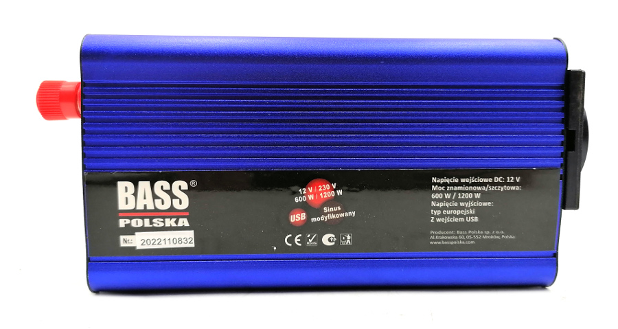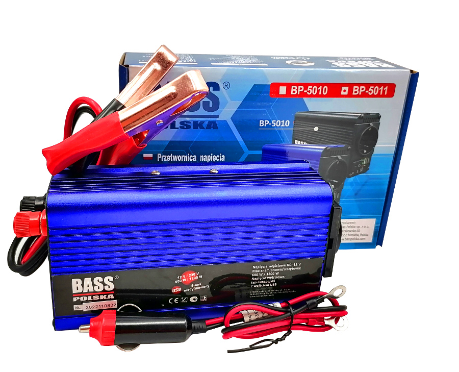 Samochodowa przetwornica napięcia Bass Polska umożliwia korzystanie z urządzeń elektrycznych w dowolnej lokalizacji. Przetwornica przetwarza prąd stały 12 V w prąd zmienny 230 V. Okaże się bardzo przydatnym urządzeniem w przypadku braku możliwości skorzystania z sieci ogólnodostępnej 230 V. Przetwornicę wystarczy podłączyć do gniazda zapalniczki samochodowej lub bezpośrednio do akumulatora. Przetwornica Bass Polska została wyposażona w gniazdo sieciowe, do którego można podłączyć urządzenia elektryczne oraz wejście USB do ładowania smartphona, czy tableta. Przetwornica napięcia Bass Polska zapewnia modyfikowany prąd sinusoidalny. Przetwornica sinusoidalna Bass Polska, występująca także pod nazwami: prawdziwy sinus, modyfikowany sinus, przetwornica z modyfikowanym sinusem etc. będzie Twoim najlepszym wyborem, jeśli do przetwornicy której poszukujesz, masz zamiar podłączyć urządzenia elektryczne 230V – silnik pompy CO, lodówkę z agregatem etc. Przetwornica sinus generuje przebieg niemalże identyczny jak ten, jaki masz w domowej sieci 230 V. DANE TECHNICZNE