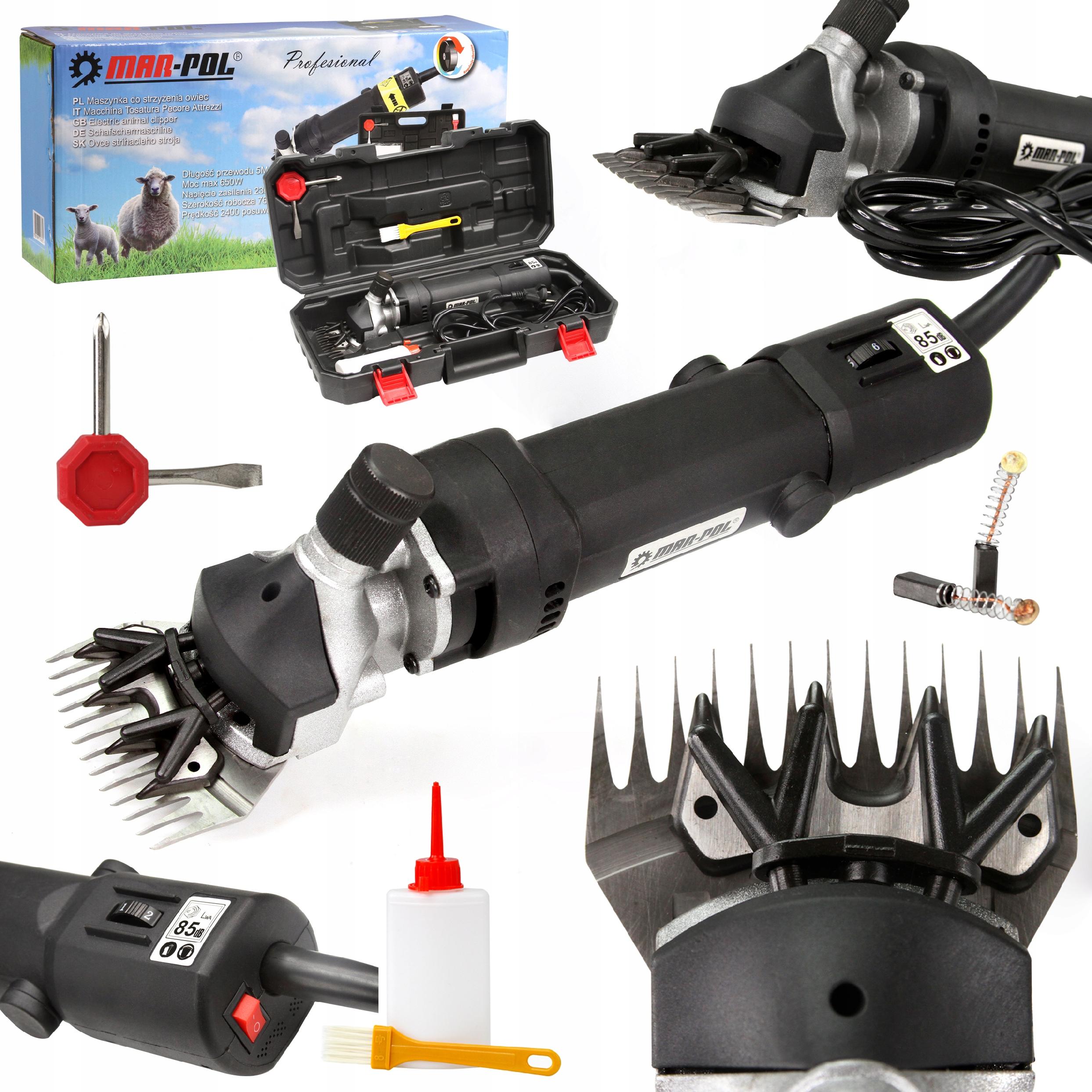 Wysokiej jakości maszynka elektryczna do strzyżenia owiec firmy MAR-POL. Zastosowanie nowoczesnych technologii oraz użycie wysokiej jakości materiałów sprawiają, iż maszynka jest w pełni profesjonalną i niezawodną maszynką do strzyżenia owiec, koni, psów oraz innych zwierząt. Maszynka dostarczana jest wraz z oliwiarką i instrukcją obsługi w poręcznej walizce z tworzywa sztucznego, w komplecie zestaw kluczy i pędzelek do czyszczenia noży. Maszynka jest lekka co wpływa na komfort i ergonomie pracy z urządzeniem. Profesjonalna strzyżarka przeznaczona do strzyżenia zwierząt hodowlanych. System chłodzenia powietrzem zapobiega przegrzewaniu się maszynki oraz pozwala na długotrwałą pracę. Maszynka charakteryzuje się stosunkowo głośną pracą, z tego względu przed użyciem na wrażliwych i płochliwych zwierzętach ( w szczególności przy goleniu psów ) należy sprawdzić reakcję zwierzęcia np. uruchamiając maszynkę w bliskiej odległości ( jednak nie dokonując czynności strzyżenia, ponieważ używanej maszynki, nie można zwrócić ) SZYBKI I ŁATWY DOSTĘP DO WYMIANY SZCZOTEK. PRZEŁĄCZNIK ON/OFF. OSTRZE MASZYNKI ZOSTAŁO WYKONANE Z HARTOWANEJ STALI OSTRZONEJ LASEROWO CO ZAPEWNIA EFEKTYWNĄ PRACĘ.