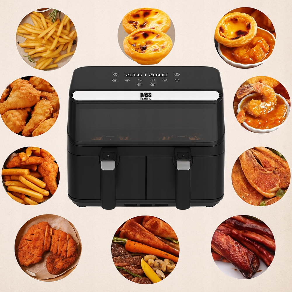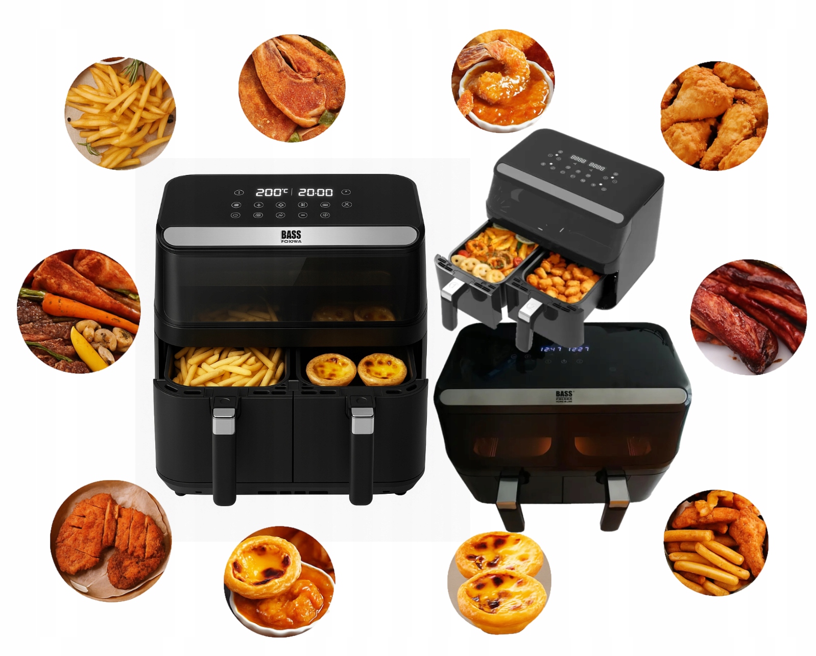 Frytkownica beztłuszczowa Bass Polska o pojemności 8,5 litra to urządzenie stworzone z myślą o osobach, które cenią sobie zdrowe, szybkie i wygodne przygotowywanie posiłków. Dzięki nowoczesnej konstrukcji, eleganckiemu wyglądowi oraz zaawansowanym funkcjom, sprawdzi się zarówno w kuchniach domowych, jak i w lokalach gastronomicznych. Model ten posiada dwie niezależne komory, które pozwalają na jednoczesne przygotowywanie dwóch różnych potraw, w różnych temperaturach i czasie, bez mieszania smaków. To ogromna wygoda i oszczędność czasu, szczególnie przy gotowaniu dla rodziny lub gości. Wyposażona w cyrkulację gorącego powietrza, frytkownica umożliwia smażenie, pieczenie i grillowanie bez dodatku tłuszczu – dania są chrupiące z zewnątrz i soczyste w środku Przezroczyste okienko w szufladzie pozwala na pełną kontrolę procesu gotowania, bez potrzeby otwierania urządzenia. Intuicyjny panel dotykowy z wyświetlaczem LED oferuje szereg automatycznych programów, precyzyjne ustawienie temperatury w zakresie od 60 do 200°C oraz timer do 60 minut. Dzięki mocy 2200–2800 W, frytkownica szybko się nagrzewa i równomiernie rozprowadza ciepło wewnątrz komory. Pojemność 8,5 litra zapewnia wystarczająco dużo miejsca do przygotowania posiłków dla całej rodziny lub większej grupy gości. To doskonałe rozwiązanie także dla food trucków, barów i innych punktów gastronomicznych, gdzie liczy się wydajność i estetyka. Współczesne badania potwierdzają, że ograniczenie spożycia tłuszczów nasyconych przyczynia się do poprawy kondycji serca, układu krążenia i ogólnego samopoczucia. Frytkownica beztłuszczowa Bass Polska pozwala cieszyć się ulubionymi potrawami, takimi jak frytki, kurczak czy warzywa, w znacznie zdrowszej wersji, bez kompromisów w smaku. To idealne połączenie technologii i troski o zdrowy styl życia.》》》 FRYTKOWNICA BEZTŁUSZCZOWA AIR FRYER FRYTOWNICA DWUKOMOROWA 8,5L BH10890 《《《