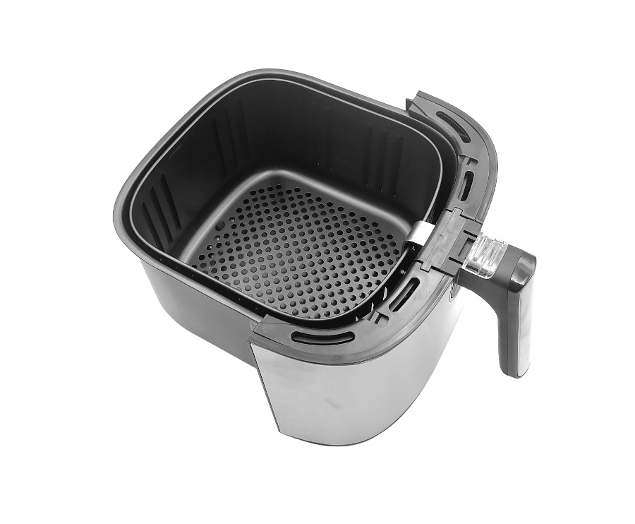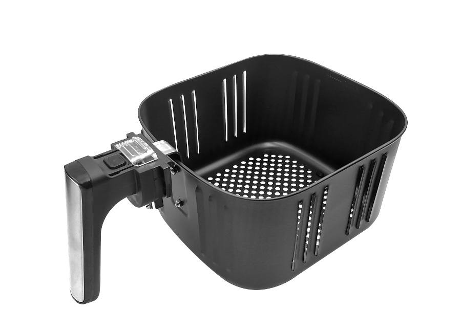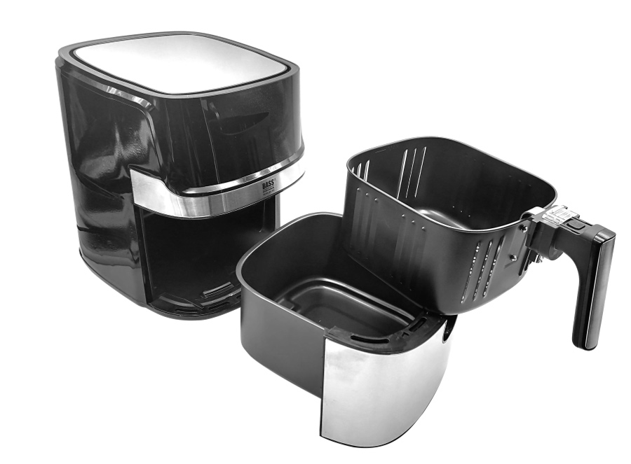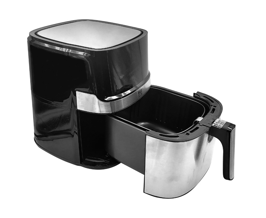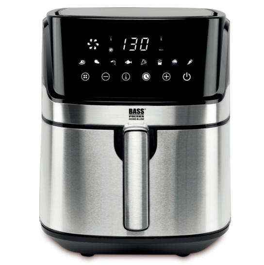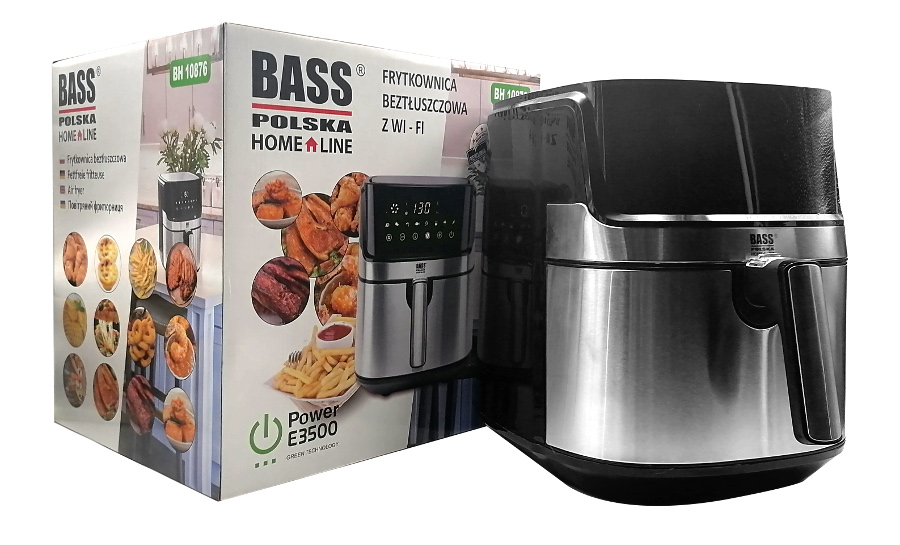 Frytkownica Bass Polska to niezwykle praktyczne urządzenie kuchenne. Umożliwia rozmrażanie, podgrzewanie, opiekanie i smażenie potraw. Z jej pomocą przyrządzisz: frytki belgijskie i zwykłe, zakręcone ziemniaki, ziemniaki łódeczki, kurczaka w panierce, paluszki rybne i serowe oraz swoje ulubione warzywa. Duża pojemność misy pozwala na przygotowanie zdrowego posiłku dla całej rodziny. Tradycyjne frytkownice wymagają użycia dużej ilości oleju, a przygotowana w nich żywność nie jest zdrowa. Frytkownice Bass Polska działa bez użycia tłuszczu. Ich unikalną cechą jest opiekanie produktów spożywczych za pomocą równomiernego przepływu gorącego powietrza. Frytkownice na gorące powietrze przygotowują chrupkie, aromatyczne i niskokaloryczne potrawy, bez kropli tłuszczu! Frytownica oferuje zupełnie nowe wrażenia z gotowania dzięki sterowaniu z telefonu komórkowego. Wystarczy połączyć ją przez Wi-Fi z aplikacją aby mieć dostęp do wielu funkcji. Możesz włączyć urządzenie wracając do domu aby po powrocie cieszyć się gotową potrawą. Frytkownica z wyjmowanym pojemnikiem jest intuicyjna w obsłudze. Posiada wygodny panel dotykowy z dużym wyświetlaczem. Dodatkowym atutem urządzenia jest łatwość czyszczenia. Obudowę wystarczy przemyć wilgotną gąbką, a kosz i pojemnik można zmywać w zmywarce. Duża rączka pojemnika ułatwia jego szybkie wyjęcie. Zamknięta komora smażenia z zatrzaskiem gwarantują bezpieczne użytkowanie. Nienagrzewający się uchwyt pojemnika wyklucza ryzyko poparzeń. Obudowa została wyposażona w antypoślizgowe nóżki, dzięki którym urządzenie nie przesuwa się po blacie kuchennym. Ponadto frytkownica Bass Polska posiada zabezpieczenie przed przegrzaniem i funkcję automatycznego wyłączania. Obudowa ze stali nierdzewnej w głębokim odcieniu szarości nadaje styl jak trwałość i bezpieczne użytkowania Elegancji dodaje jej delikatnie połyskujący pasek. Gładki panel dotykowy bez wystających regulatorów i pokręteł zachwyci fanów minimalistycznego wyposażenia kuchni ✅ Dane techniczne Wymiary produktu 368x288x332mm