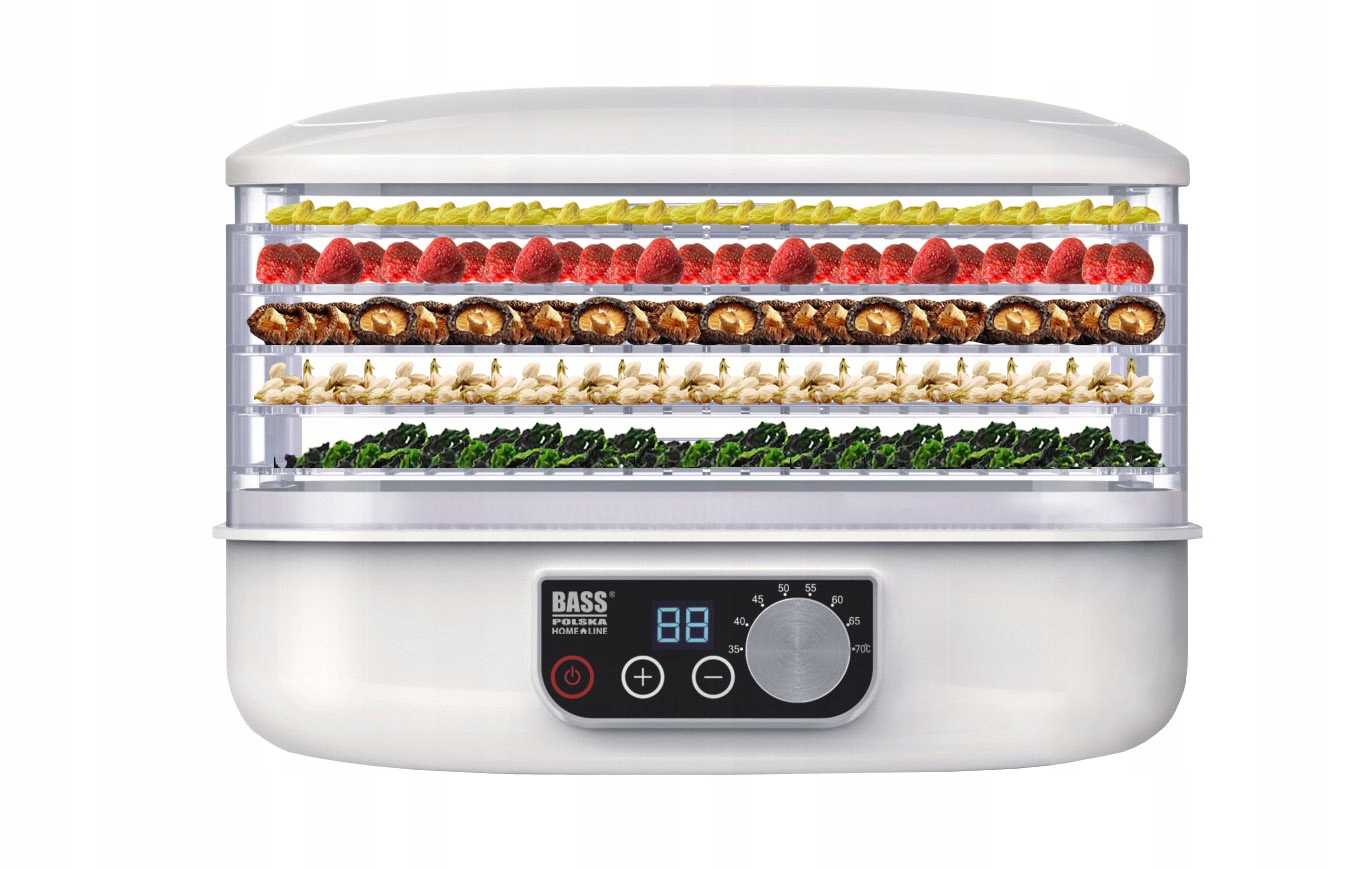 Suszenie produktów to skuteczny i łatwy sposób na konserwację, zatrzymanie smaku i zapachu oraz wartości spożywczych i odżywczych suszonych produktów. Dzięki temu, przez cały rok, można delektować się smakiem owoców, warzyw czy grzybów bez dodatku konserwantów i innych sztucznych składników. Urządzenie to zachowuje smak i aromat ulubionych produktów na dłużej. Jest niezbędne w każdej nowoczesnej i zdrowej kuchni. Teraz, niezależnie od pory roku, możesz cieszyć się dawką naturalnych witamin lub zaskoczyć znajomych zdrową przekąską podczas wspólnych spotkań. CECHY PRODUKTU: Wbrew pozorom suszarka nie służy wyłącznie do suszenia owoców (jabłek, śliwek, bananów, moreli, nektarynek, brzoskwini, jagód, czereśni, ananasów, truskawek, żurawiny, gruszek, winogron), warzyw (pomidorów, marchwi, szparagów, rabarbaru, buraków, kapusty, brokułów, selera, kukurydzy, papryki, dyni, cukinii, ziemniaków, ogórków) i grzybów. Co jeszcze można w niej suszyć? Przekąski bez konserwantów - zachowaj walory swoich ulubionych naturalnych przekąsek na dłużej nie stosując konserwantów. To teraz prostsze niż myślisz. Produkty suszone w suszarce są bez konserwantów - dzięki czemu możesz mieć pewność, że są zdrowe. Suszone owoce i warzywa zawierają dużo witaminy K i B, a także minerałów i błonnika, przez co stanowią nie tylko smaczną, ale i zdrową przekąskę. ✅ DANE TECHNICZNE