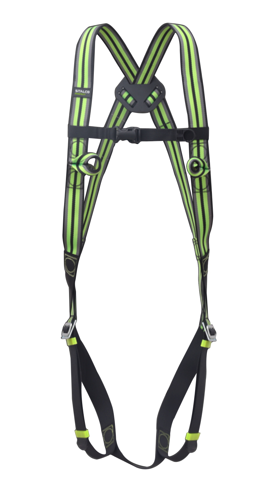 W sład zestawu wchodzą Szelki bezpieczeństwa 2-punktowe GREKON STALCO + Lina amortyzująca z zaczepem VERTA STALCO PERFECT. Całość zapakowana w poręcznym pokrowcu (plecaku). Uprząż kategorii III, zgodna z normami EN 361 , przeznaczona do pracy na wysokości. Posiada regulowane klamry na udach oraz zaczep grzbietowy umieszczony w skrzyżowaniu taśm, co poprawia wygodę i bezpieczeństwo użytkowania. Wykonana ze stabilnego materiału syntetycznego, w uniwersalnym rozmiarze, w kolorystyce czarno‑zielonej. Lina amortyzująca z zaczepem VERA, niezbędny element dla osób pracujących na wysokościach, gwarantuję bezpieczeństwo i stabilność. Taśma poliestrowa o długości 1,8m, oraz szerokości 30mm zapewnia trwałość i odporność na warunki atmosferyczne. Lina posiada stalowy karabińczyk z blokadą śrubową oraz stalowy hak o szerokości otwarcia 50,8mm, ułatwiające stabilne połączenie z punktem kotwiczenia. Produkt spełnia normę E355.