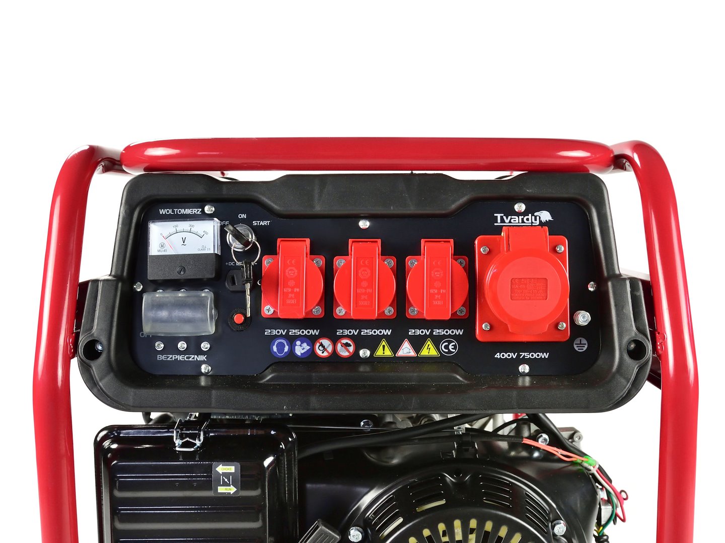 Profesjonalny agregat prądotwórczy wyposażony w silnik spalinowy o pojemności 456cc i mocy 17 KM. Prądnica agregatu posiada miedziane uzwojenie, dzięki czemu pozwana wygenerować chwilową moc maksymalną na poziomie 8500W. Moc stała jaką może być obciążany agregat wynosi 7500W dla gniazda 400V, oraz 2500W dla każdego z gniazd 230W. Automatyczny regulator napięcia (AVR) jakim dysponuje urządzenie, dzięki stałemu monitorowaniu i natychmiastowej korekcie, utrzymuje napięcie wyjściowe o stałej wartości, niezależnie od obciążenia i temperatury roboczej. Zbiornik paliwa o pojemności 25l pozwala na nieprzerwaną prace (przy średnim obciążeniu) przez ok. 7h.》》》 AGREGAT PRĄDOTWÓRCZY max.8,5KW 230V400V AVR 456cc 17 KM T05004 《《《