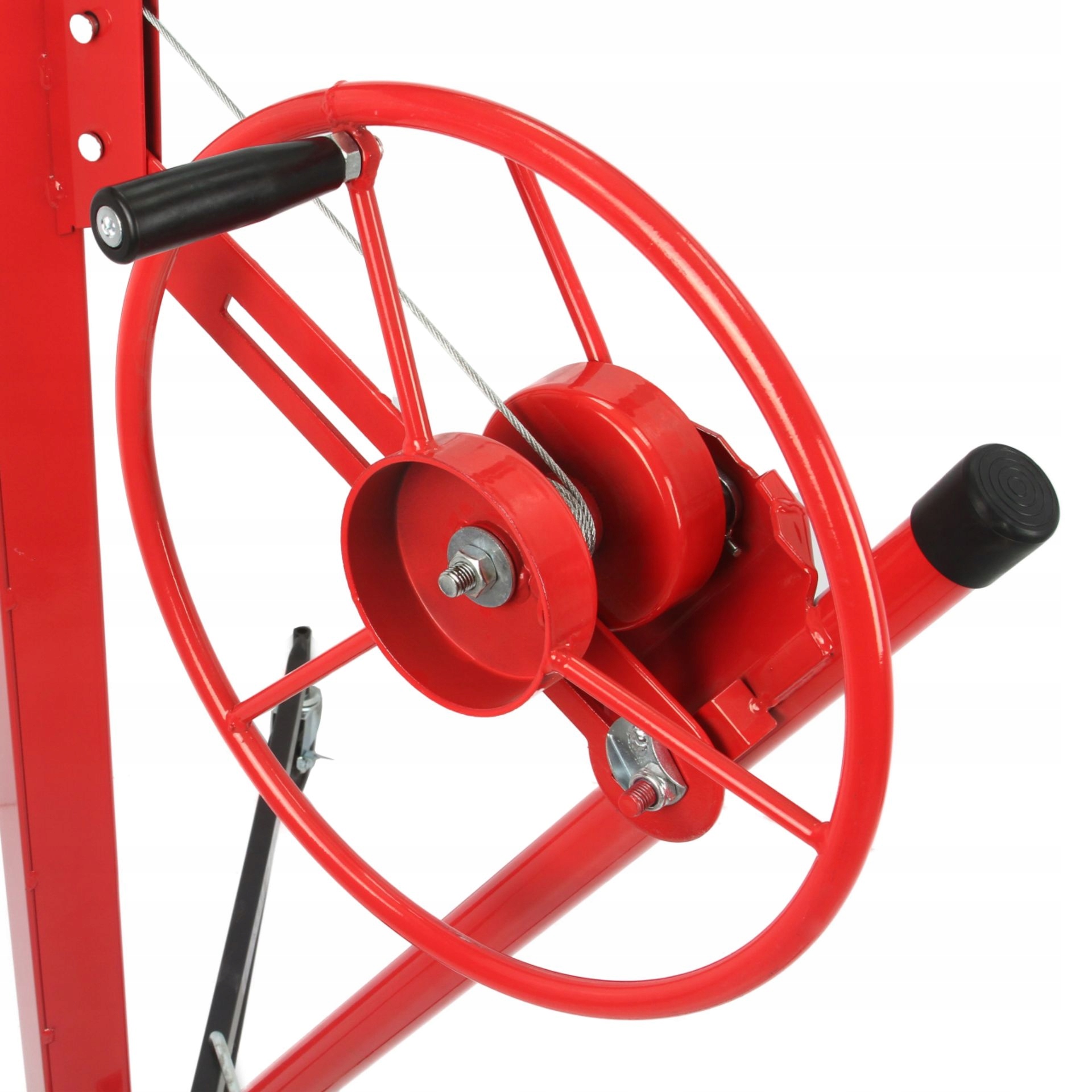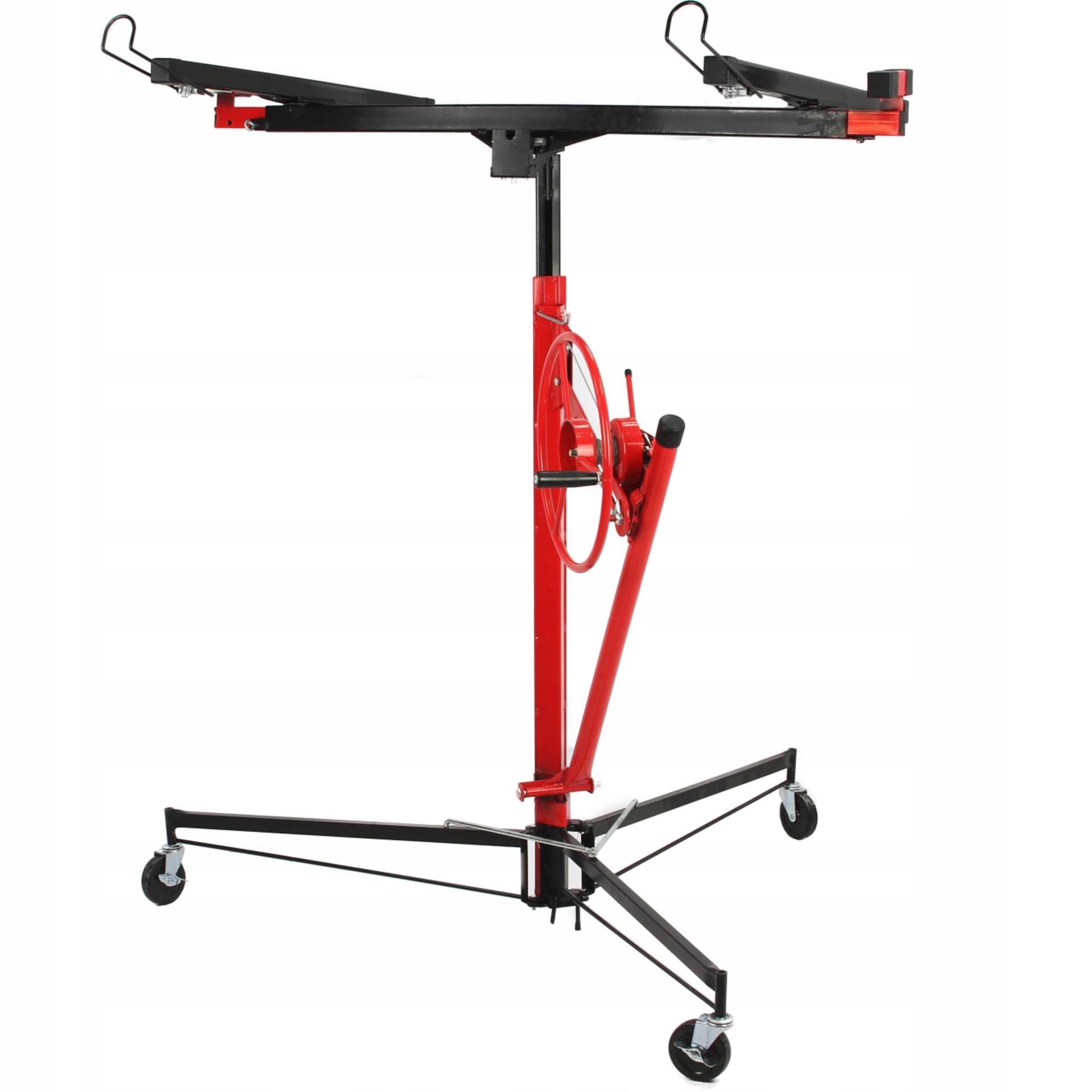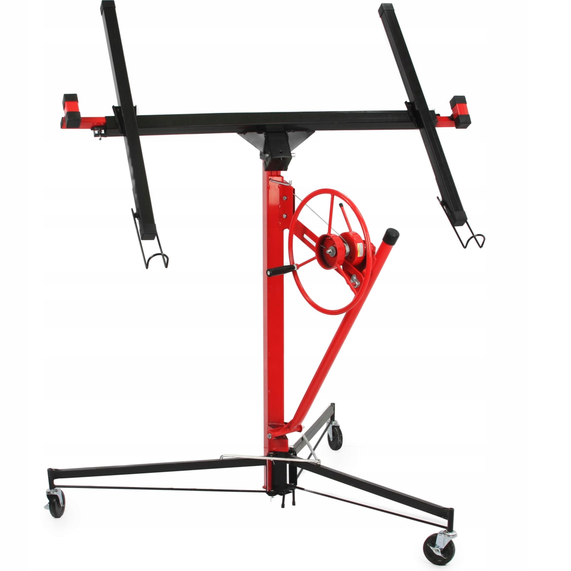 Podnośnik do płyt gipsowych jest niezbędnym narzędziem przy pracach związanych z wykończeniami, przy podwieszanych sufitach oraz montażem płyt G-K oraz OSB. Konstrukcja urządzenia zapewnia szerokie pole manewru oraz wygodę użytkowania. Podstawa z 3 kołami z możliwością blokady zapewnia stabilność i mobilność urządzenia. Konstrukcja urządzenia umożliwia montaż płyt na powierzchniach ukośnych, na wysokości do 335cm oraz w ciasnych miejscach. Urządzenie nadaje się do montażu nawet dużych płyt o wymiarach 128 x 488. Podnośnik bardzo łatwy w montażu i demontażu, o prostej, wzmocnionej konstrukcji. Całość po złożeniu zajmuje bardzo mało miejsca dzięki czemu można bez problemu magazynować urządzenie w mniejszych pomieszczeniach.