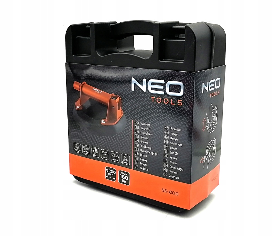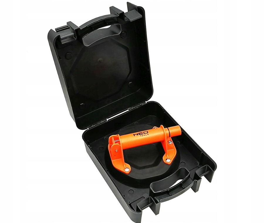 Przyssawka próżniowa z pompką, do glazury i szkła, 160 kg, w walizce, 56-800, NEO to wygodne, ręczne urządzenie do przenoszenia szyb, płytek, dużych tafli z tworzywa sztucznego, a także mebli i innych przedmiotów o gładkiej powierzchni. Przyssawka służy także do usuwania wgnieceń w karoserii samochodów. Uniwersalne narzędzie, które umożliwia bezpieczny transport i montaż okien, kafelków i innych elementów. ✅ Charakterystyka produktu: Dane techniczne: Materiał: