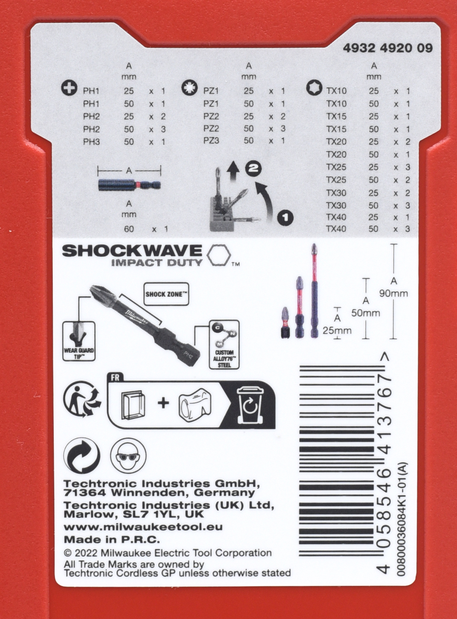 Zestaw bitów udarowych Shockwave Impact Duty Milwaukee zawiera 38 bitów o wysokiej wydajności do użytku z narzędziami udarowymi. Idealny dla rzemieślników i entuzjastów majsterkowania, którzy muszą poradzić sobie z wierceniem i mocowaniem. Bity zawarte w tym zestawie wykonane są z bardzo wytrzymałego matriału, co zapewnia im większą trwałość i wytrzymałość. Dzięki unikalnej konstrukcji bitów wkrętakowych posiadają one geometrię SHOCK ZONE, która umożliwia wyginanie się bitów bez ich łamania. Konstrukcja strefy uderzenia, a także specjalna obróbka cieplna każdego bitu podczas produkcji, czyni je bardziej odpornymi na uszkodzenia udarowe. ❗ Bity udarowe SHOCKWAVE™ ❗ ➜ 16 bitów udarowych SHOCKWAVE™ o długości 25mm: ➜ 21 bitów udarowych SHOCKWAVE™ o długości 50mm: ➜ Magnetyczny uchwyt do bitów SHOCKWAVE™ o długości 60mm.》》》 ZESTAW BITÓW UDAROWYCH SHOCKWAVE 38szt. MILWAUKEE ® SHOCKWAVE IMPACT DUTY 4932492009 《《《