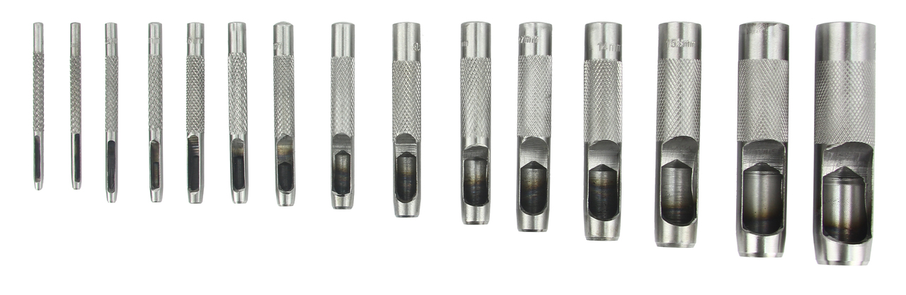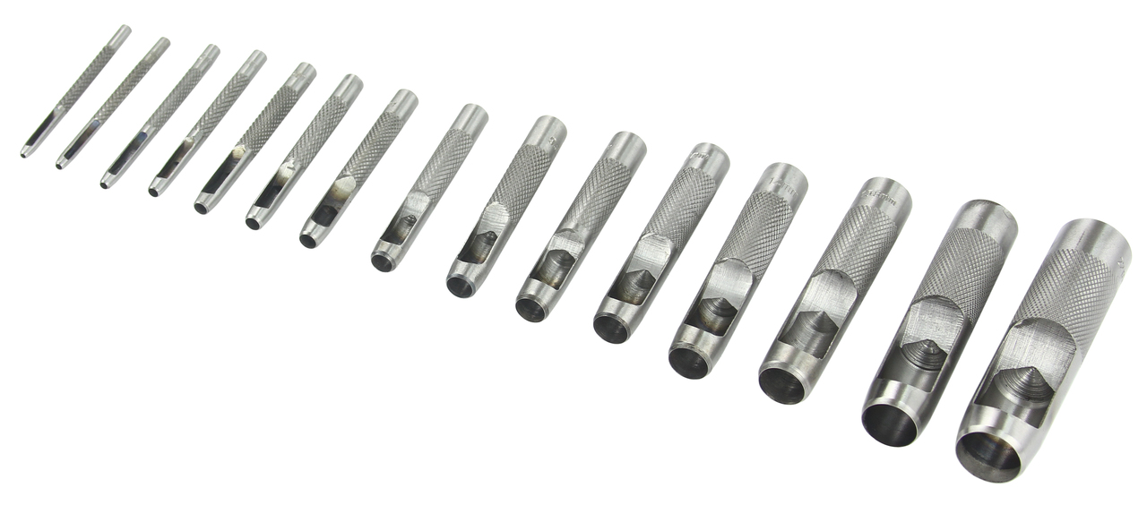 Umożliwiają wykonywanie otworów poprzez uderzenie w główkę przebijaka młotkiem. Posiadają otwory do usuwania wyciętego materiał. Pakowane w etui. Idealnie nadają się do wykonywania otworów w takich materiałach jak: skóra, miękkie tworzywa sztuczne, guma, balsa, pianki, tektura, tekstylia itp. Zestaw zawiera wycinaki o następujących średnicach: