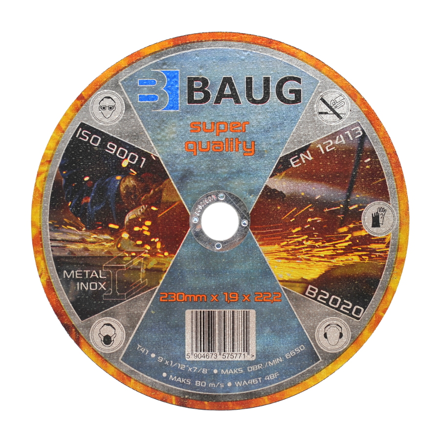Tarcze tnące BAUG są trwalsze i umożliwiają szybką, łatwą i ekonomiczną pracę. Na wysoką jakość ma wpływ staranny dobór i połączenie wysokogatunkowych surowców. Oprócz wytrzymałego materiału, jakim jest węglik krzemu (SiC), gwarancją trwałości i bezpieczeństwa tarcz jest przede wszystkim ich przemyślana konstrukcja: jednorodna mieszanina wysokowartościowego materiału ściernego i żywic sztucznych, wzmocniona warstwami z włókna szklanego.