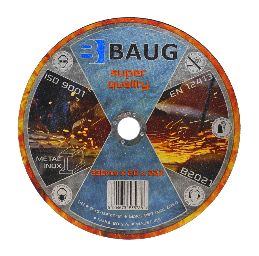 Tarcze tnące BAUG są trwalsze i umożliwiają szybką, łatwą i ekonomiczną pracę. Na wysoką jakość ma wpływ staranny dobór i połączenie wysokogatunkowych surowców. Oprócz wytrzymałego materiału, jakim jest węglik krzemu (SiC), gwarancją trwałości i bezpieczeństwa tarcz jest przede wszystkim ich przemyślana konstrukcja: jednorodna mieszanina wysokowartościowego materiału ściernego i żywic sztucznych, wzmocniona warstwami z włókna szklanego.