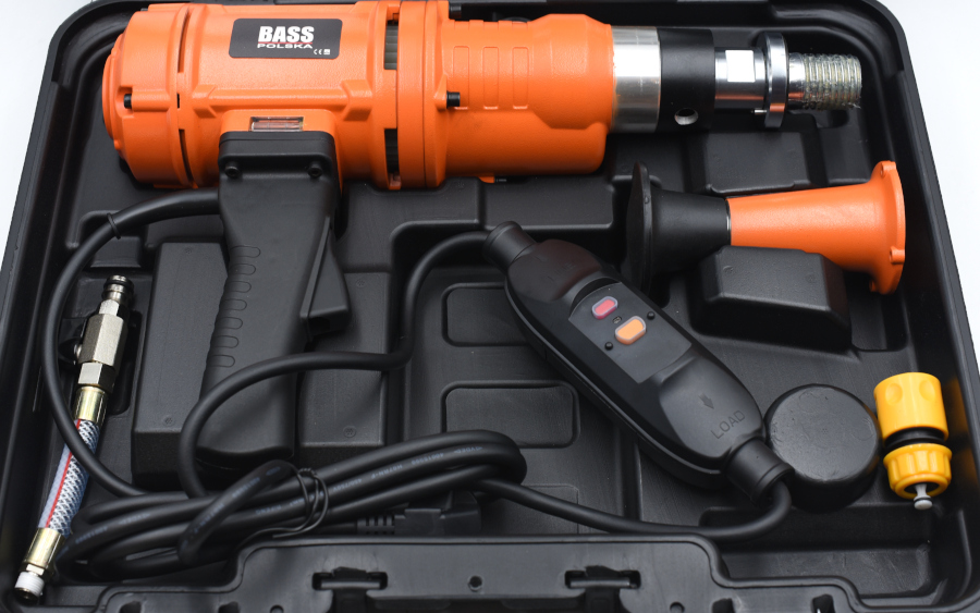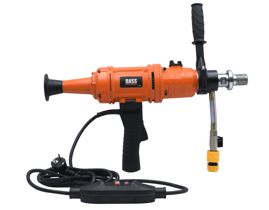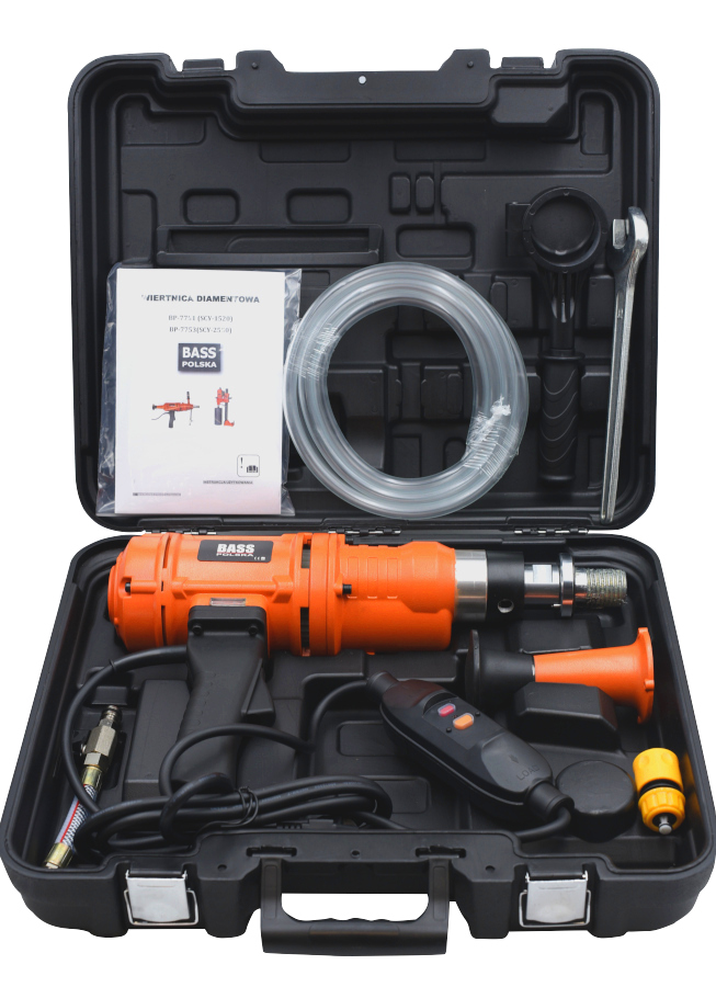 Wiertnica posiada 2-biegową przekładnię mechaniczną i została wyposażona w nowoczesny silnik o dużej mocy znamionowej 1800 W, charakteryzujący się bezawaryjnością i niskim poziomem głośności. Prostota i wygoda obsługi, dzięki ergonomicznie rozmieszczonym elementom sterowania, zapewniają efektywną i wysoce profesjonalną pracę. Urządzenie zostało wyposażone w regulację obrotów przyciskiem włącznika, sprzęgło przeciążeniowe mechaniczne oraz termiczny wyłącznik przeciążeniowy. Zintegrowana poziomica na obudowie maszyny i uchwycie służąca do właściwego ustawienia wiertnicy. Jest to uniwersalna wiertnica do prac instalatorskich, wiercenie na sucho do ø 152 mm, do wykorzystania w technice grzewczej i sanitarnej oraz podczas budowy instalacji wentylacyjnych, jak również w branży elektrycznej (np. puszki pod gniazdka elektryczne). Urządzenie zapewnia dokładne wiercenie w murze z cegieł oraz miękkim betonie. Zintegrowane przyłącze do sieci wodociągowej umożliwia tworzenie otworów na mokro i sucho. ✅ DANE TECHNICZNE: WIERTŁA I STOJAK NIE NALEŻĄ DO ZESTAWU.