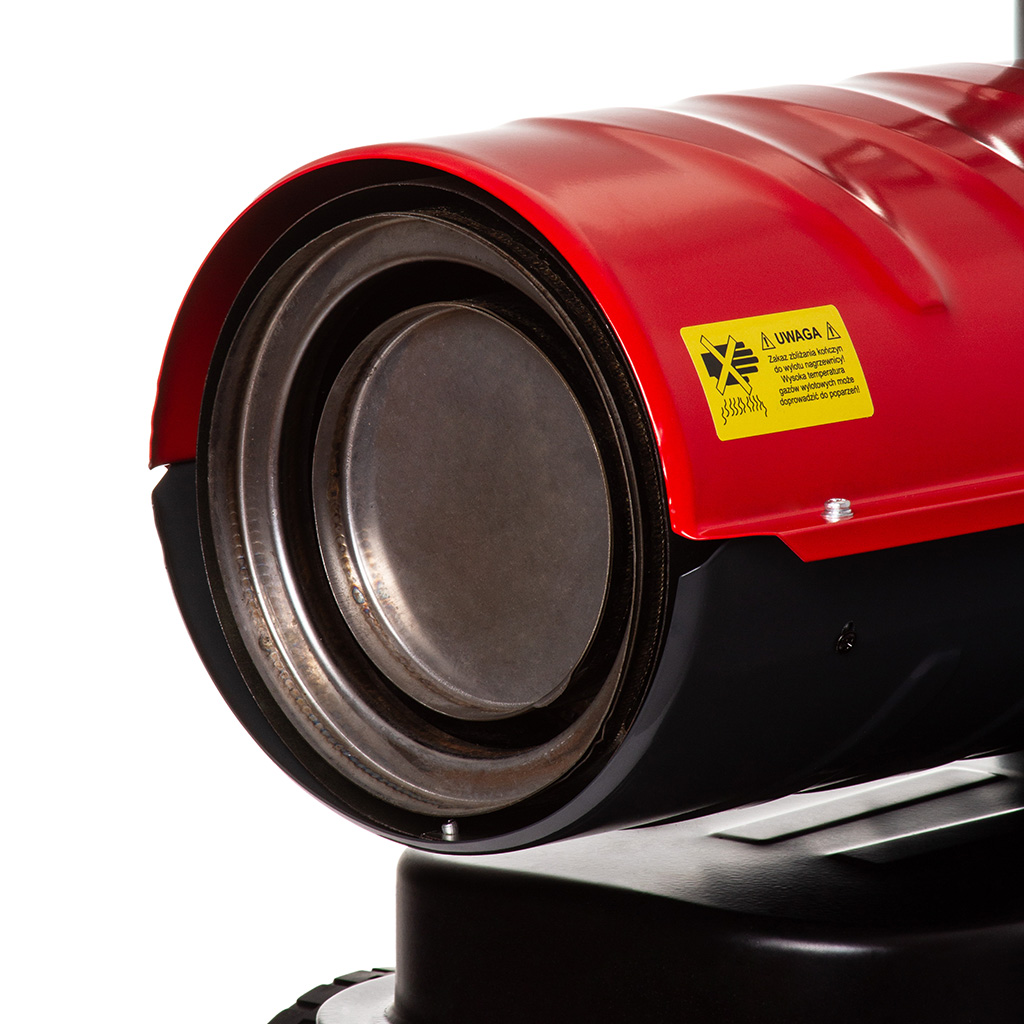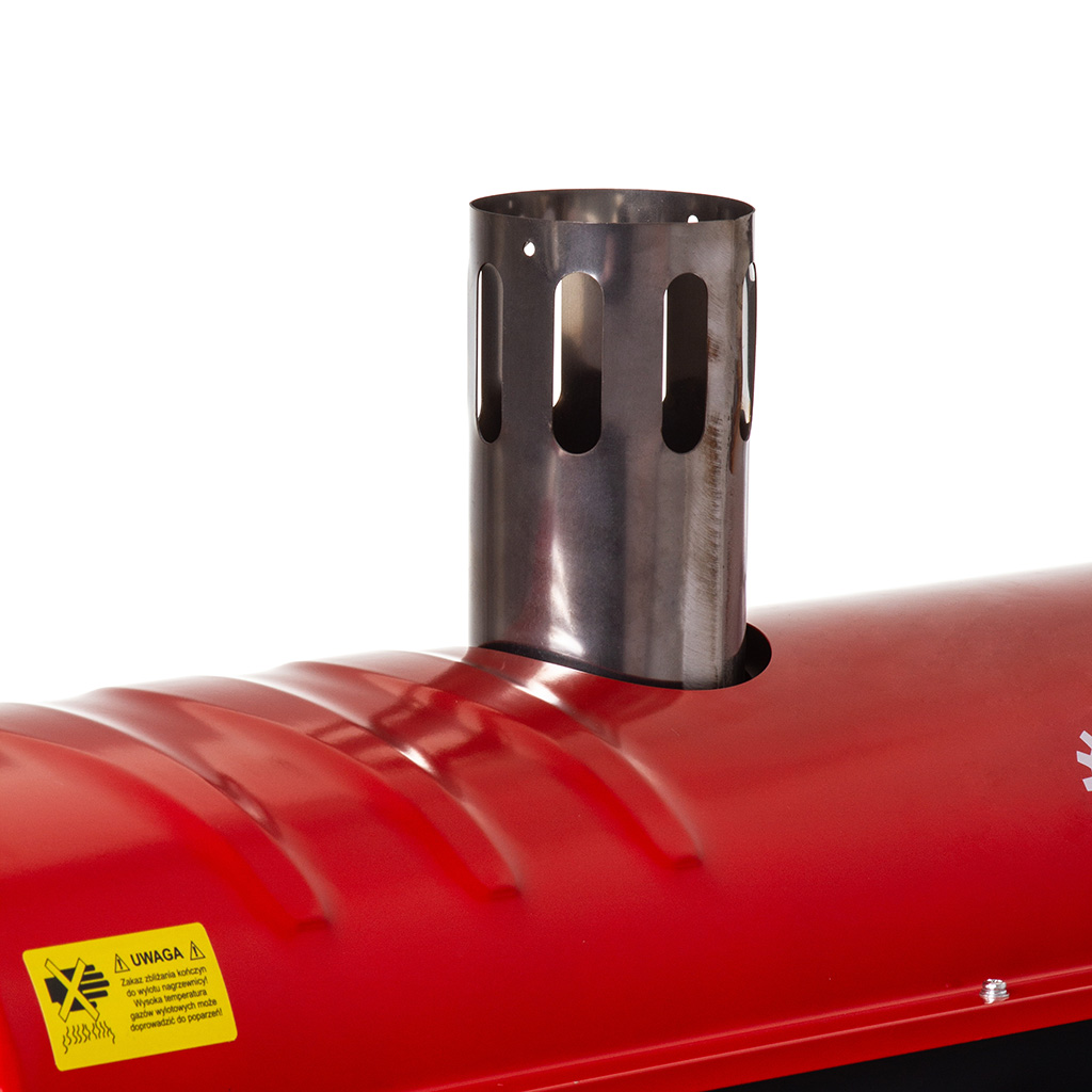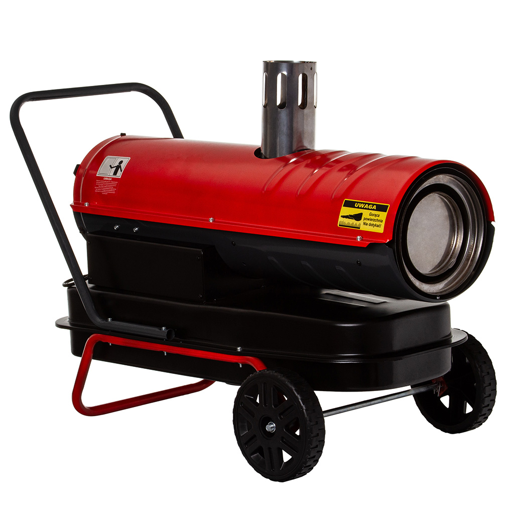 Mobilna nagrzewnica olejowa o mocy 30kW idealnie znajdzie swoje zastosowanie przy ogrzewaniu dużych pomieszczeń. Obudowa urządzenia została wykonana z metalu, natomiast element grzejny ze stali nierdzewnej. Przepływ powietrza wynosi 600m3/h. Dzięki otwartej komorze spalania uzyskujemy wysokie temperatury wydmuchu, pozwalające na bardzo szybkie nagrzanie obiektu lub wysuszenie materiałów. Wyposażona w komin do odprowadzania spalin. Nagrzewnica posiada regulację temperatury za co odpowiada dodatkowy termostat oraz pokrętło regulacji temperatury. Wyświetlacz z lewej strony wskazuje temperaturę otoczenia natomiast wyświetlacz z prawej - temperaturę zadaną. Przekręcenie pokrętła w prawo zwiększa temperaturę do której nagrzewnica będzie dążyć, po jej osiągnięciu zmniejszy moc tak by ją utrzymywać. Wyposażona w koła, uchwyt, podstawki i poręcze ułatwiające ich transport. Jest to idealne rozwiązanie zarówno w domu, na hali magazynowej czy budowie.》》》 NAGRZEWNICA OLEJOWA DMUCHAWA SPALINOWA 30KW KOMIN Z ODPROWADZANIEM SPALIN M80934 《《《